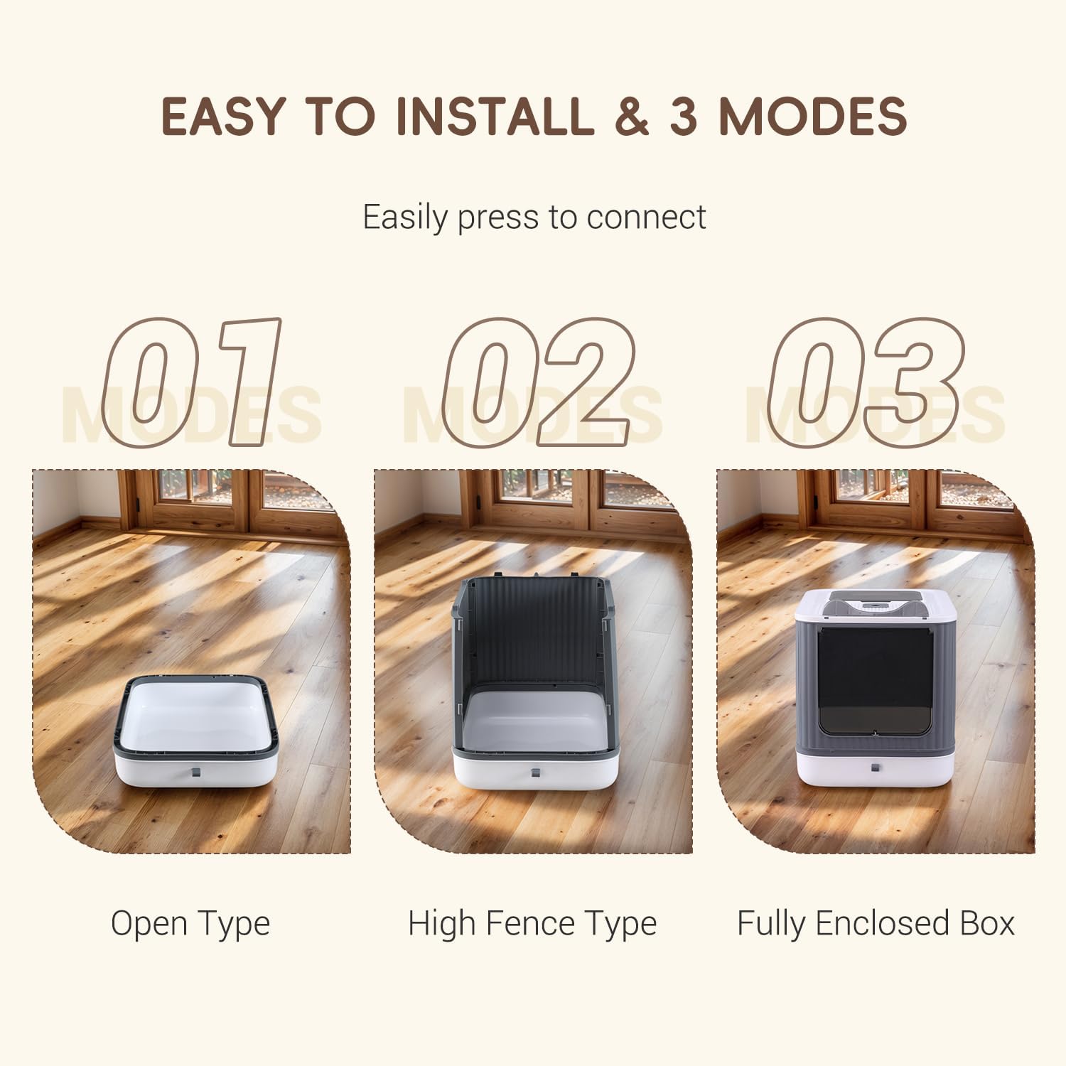 - 【Excellent Features-Pretty and Practical】 3 Modes for cat covered litter box,cats can use from kitten to adult.It is not only cat litter boxes,but also can be used as a delicate decoration to the house.