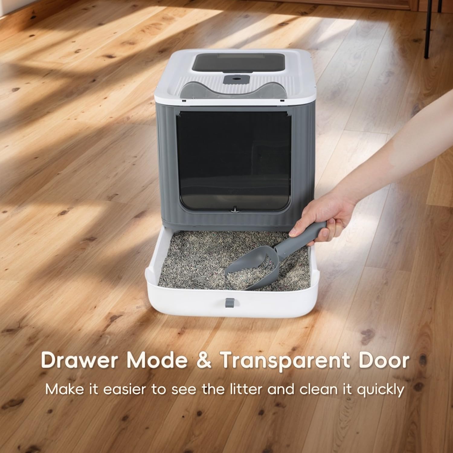 - 【Amazing Design-Easy to Clean】Enclosed cat litter boxes with drawer and scoop,easy to clean used litter and replacement of the new cat litter.Toilet for cats comes with a Deodorization bag,remove odor and keep the air fresh.
