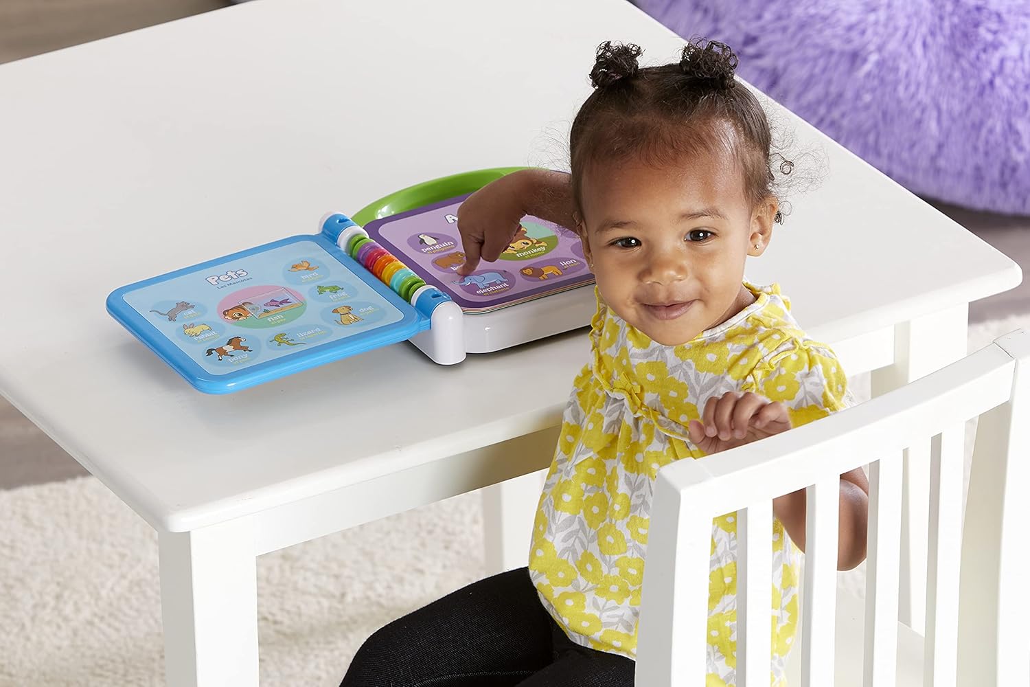Meet learning friends turtle, tiger and monkey who will introduce more than 100 age-appropriate words chosen by learning experts