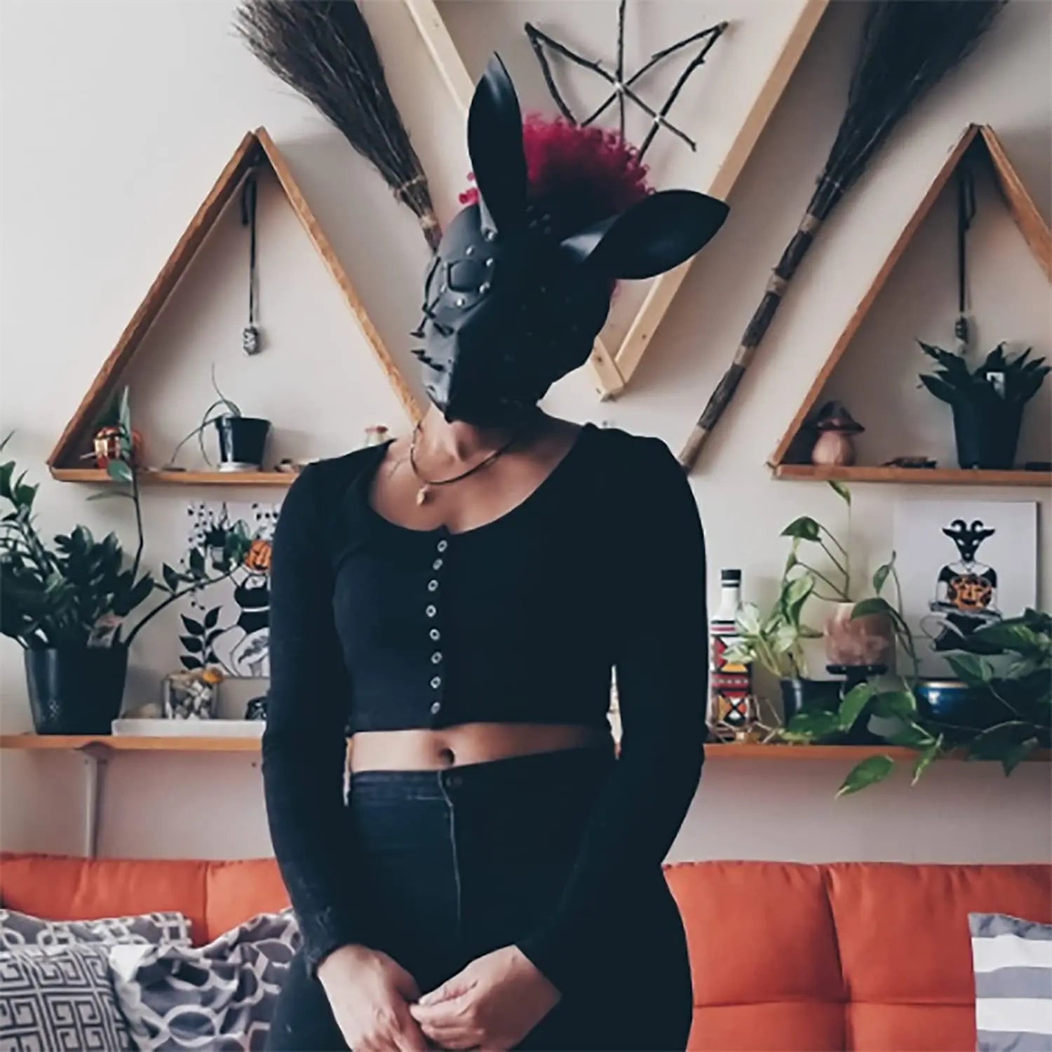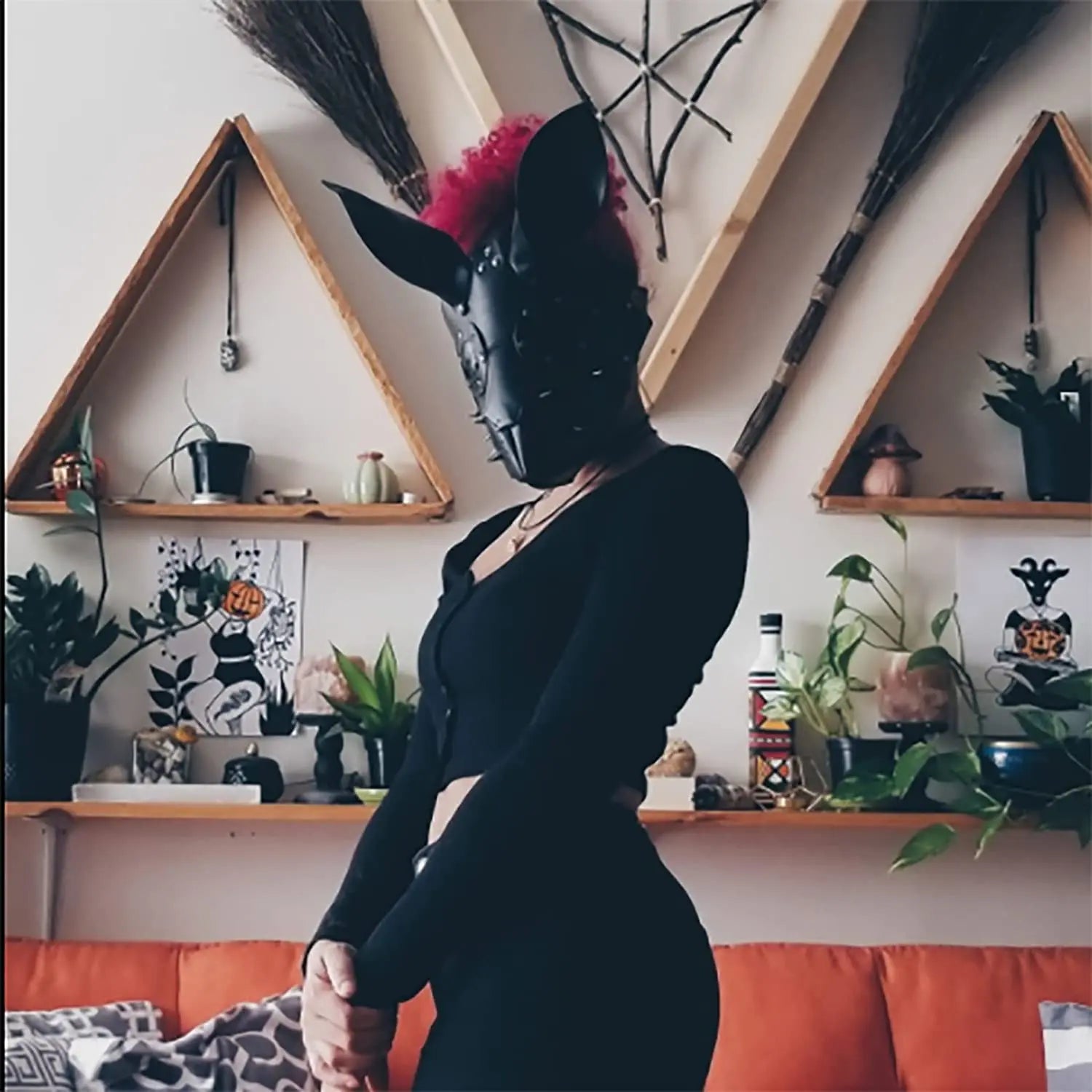 Crafted from sleek PU leather, it hugs the contours of the face beautifully, creating a dramatic silhouette that’s playful, mysterious, and irresistibly chic.