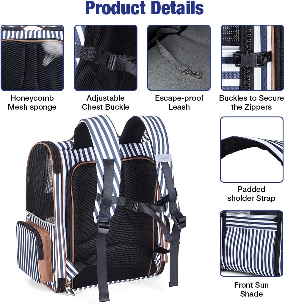 - Sturdy & Safety: Large cat carrier with a durable rod on the top and both sides are fixed with frames to stabilize the structure, plus a firm bottom pad offers solid support for your pets. Also comes with a safety leash to prevent escape, this pet backpack carrier is sturdy and safe for your pets.