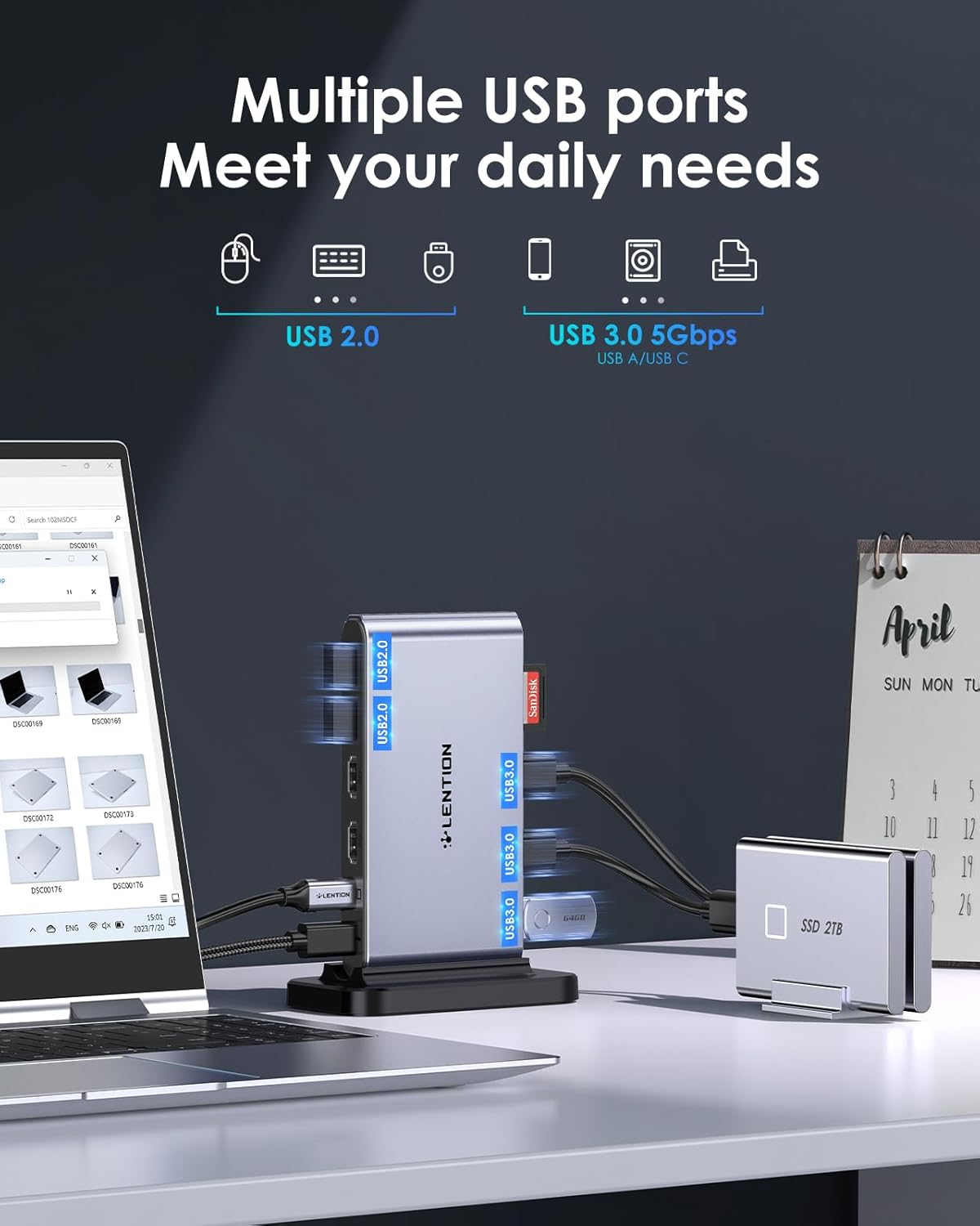 LENTION 10-in-1 USB-C Docking Station with Dual HDMI Monitor Adapter, 4K@60Hz, PD 100W, USB C Data Port, USB 3.0/2.0, SD/TF Card Reader, 3.3FT Long Cable for Mac and Windows Laptop (D62, Space Gray)PL17-B0D4QS7JLX