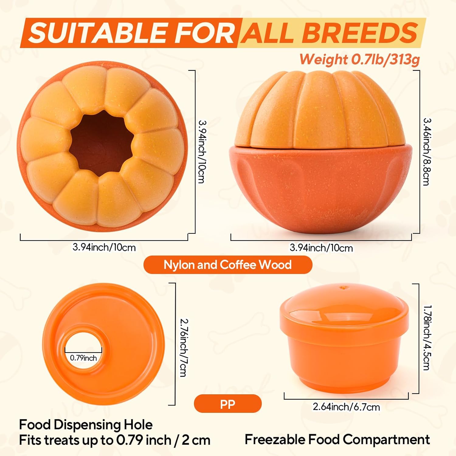 • 【Safe & Easy to Clean】 The dog treat ball is crafted from high-quality nylon and coffee wood, while the food compartment is made from food-grade PP material. This ensures safety and durability for your pet's chewing and licking. This interactive dog toy is easy to clean and dishwasher safe. For your pet's safety, regularly check the toy to ensure it remains intact.