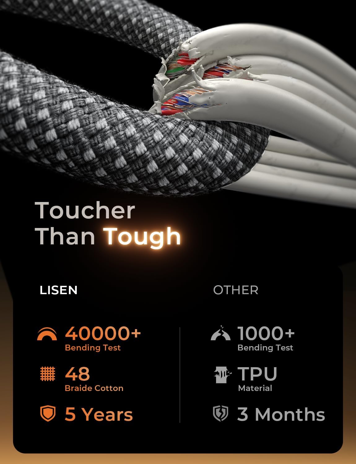 【What You Get】LISEN USB C to USB C Cable 5-Pack (3.3/3.3/6.6/6.6/10FT), 18-Month worry-free period and 24/7 customer service, if you have any questions, we will resolve your issue within 24 hours. Whether you're shopping for samsung or iphone 16 pro max charger cord accessories gifts for men/women or reliable car accessories, this super fast charger usb c to c cable is built to last