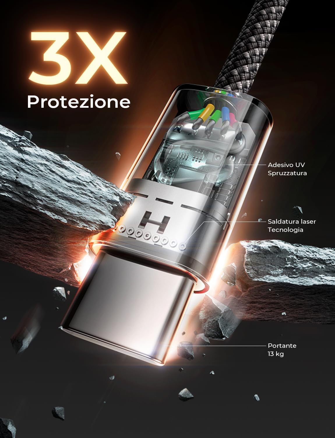 【Triple Protection USB C Port】USB to USB C Cable has electronic safety certifications that comply with appropriate standards, it built-in laser welding technology, which ensure the metal part won't break. The copper core part is reinforced with UV glue to prevent the solder joints from falling off. The USB C port pass Load-bearing 13KG test which longer service life and will never break.