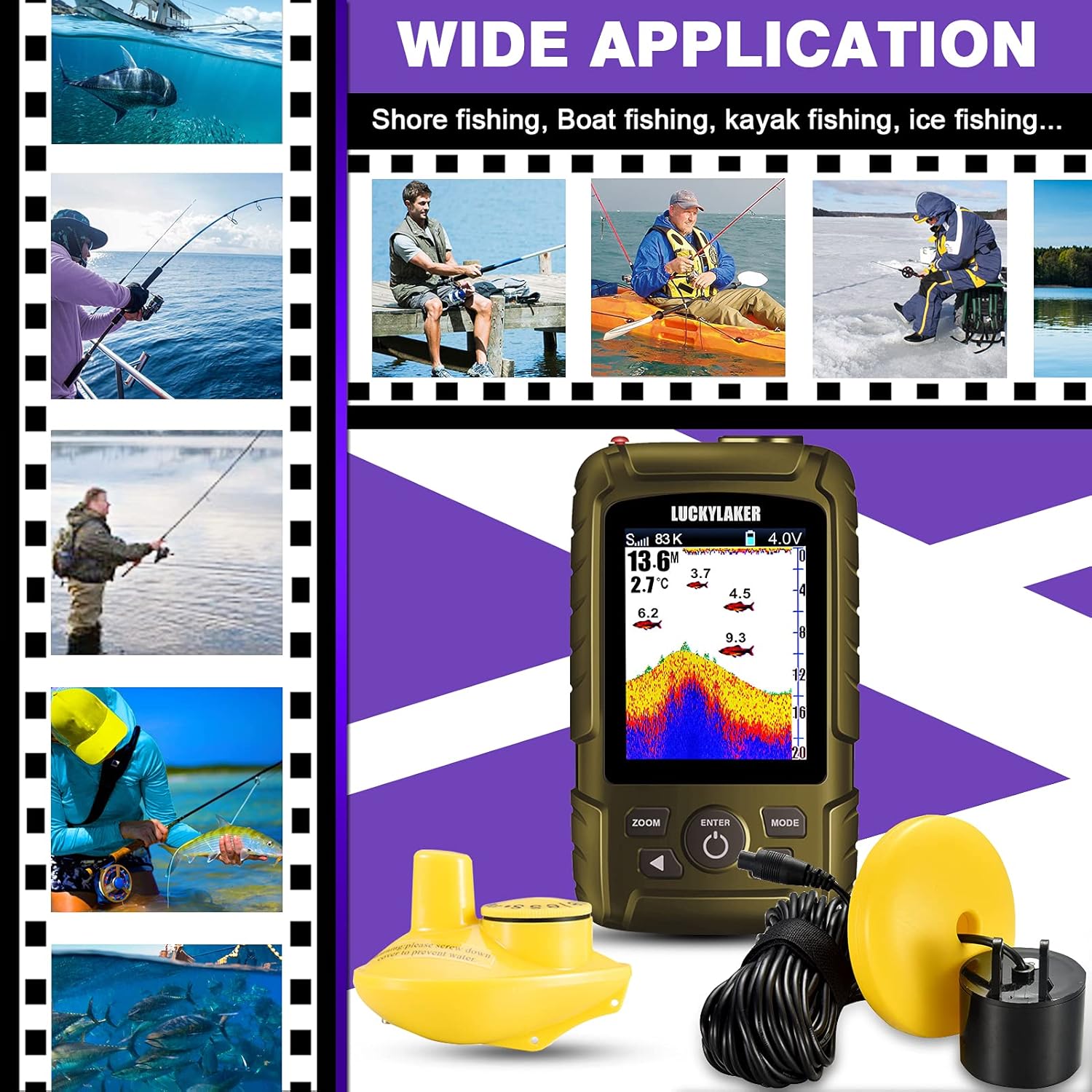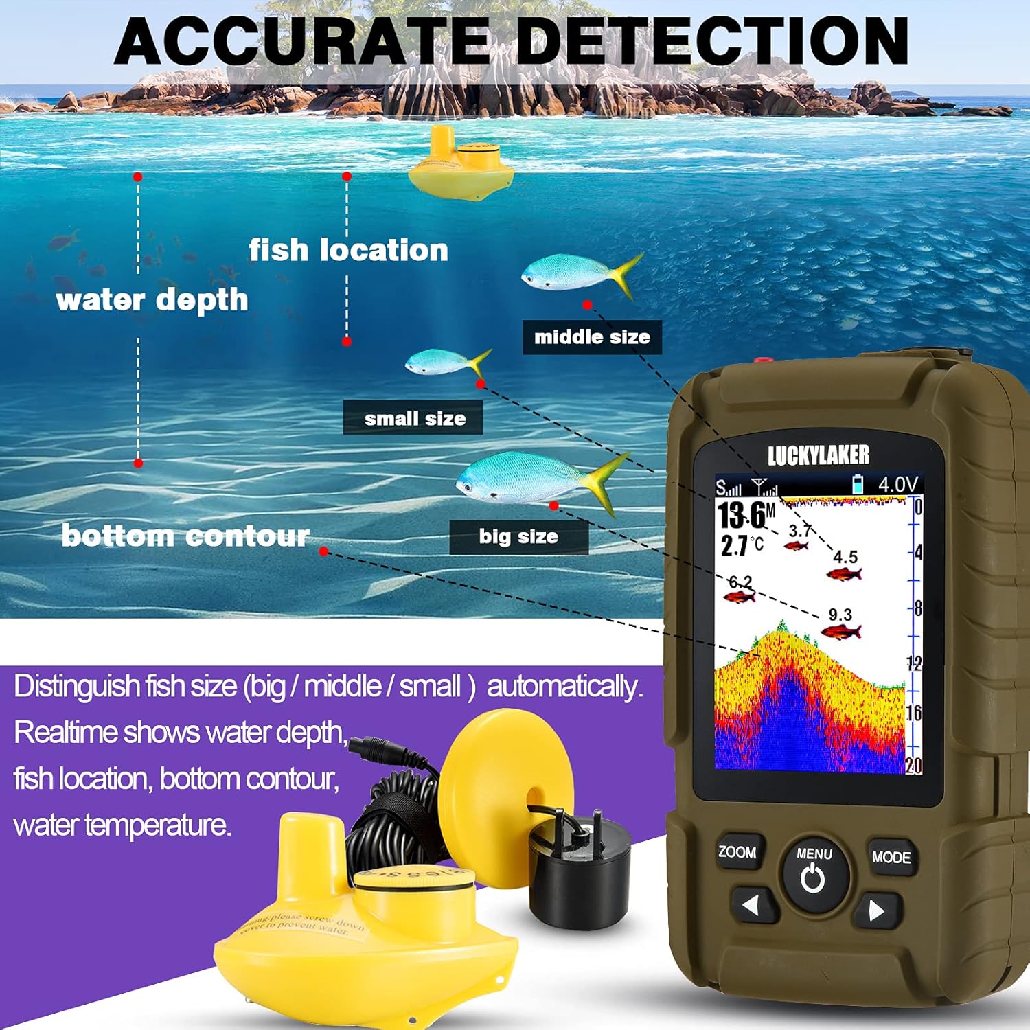 LUCKYLAKER Sensor Handheld Fish Finder Water LCD Boat Depth Finder Display Transducer Wireless Waterproof Fish Finders Transducer Fishing Gift