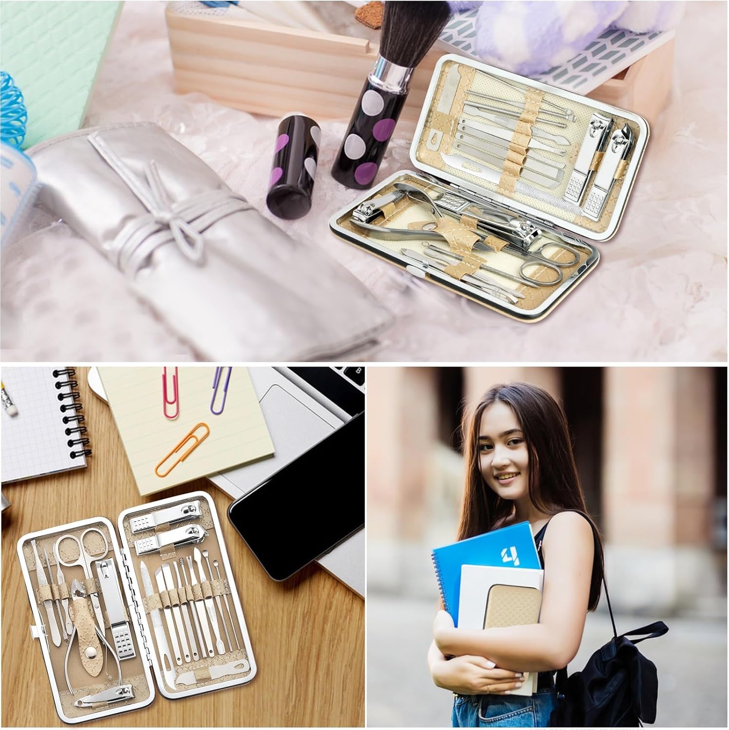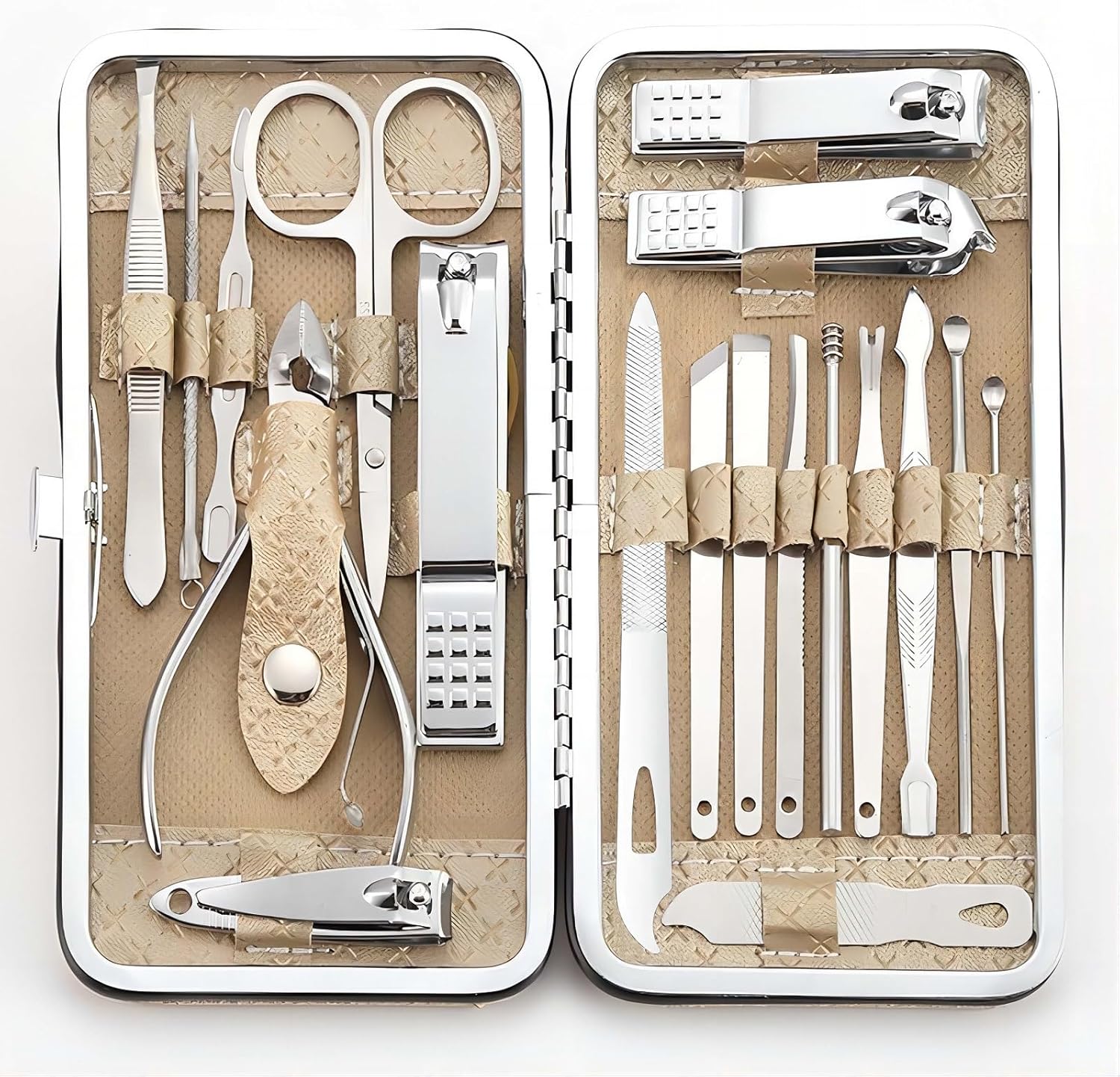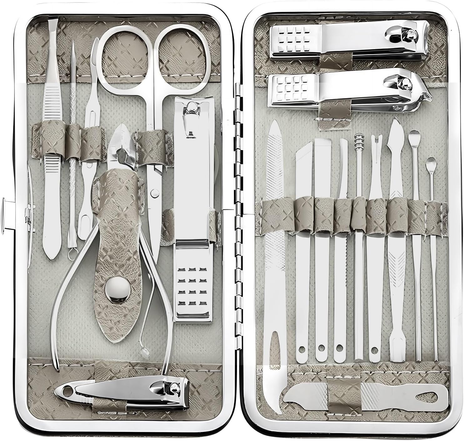 19 Tools Optional - Featuring sturdy stainless steel professional manicure kit, is your one-stop solution for nails, pedicure, facial, and grooming needs. The pedicure kit set includes everything from nail clippers to tweezers, cuticle cutters, and even nose hair scissors, saving you the cost of individual purchases. The nail clipper kit ability to easily handle thick nails demonstrates its efficiency and strength.
