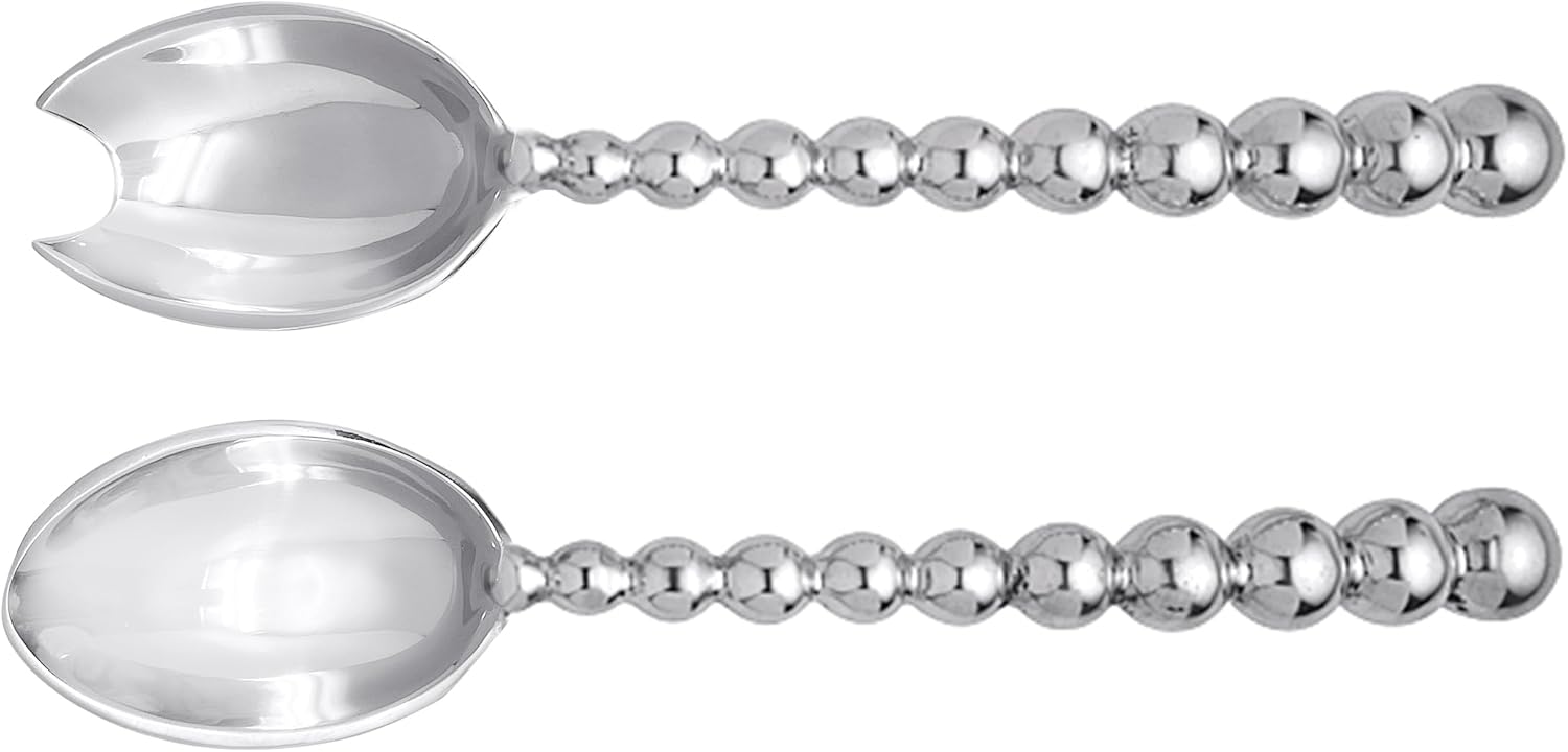 Classic salad servers with pearled handles. Just as pearls dress up any outfit, these salad servers dress up any serving bowl! part of our signature string of pearls collection.