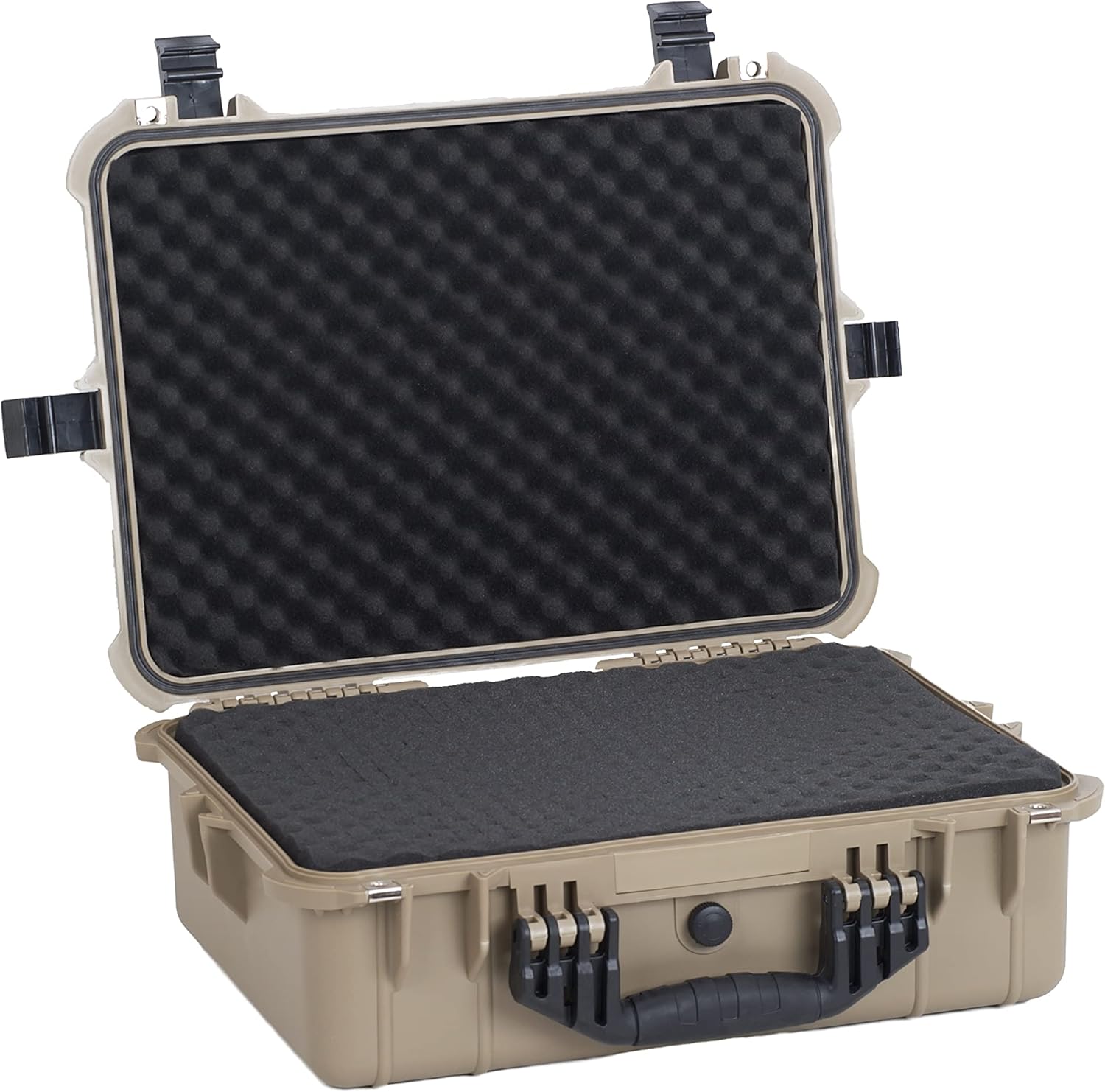 MEIJIA Portable Large Protective Hard Camera Case,Foam Inserted, Elegant Black, for use of Drones,Camera,equipments 19.78"X15.77"X7.41",Desert Tan