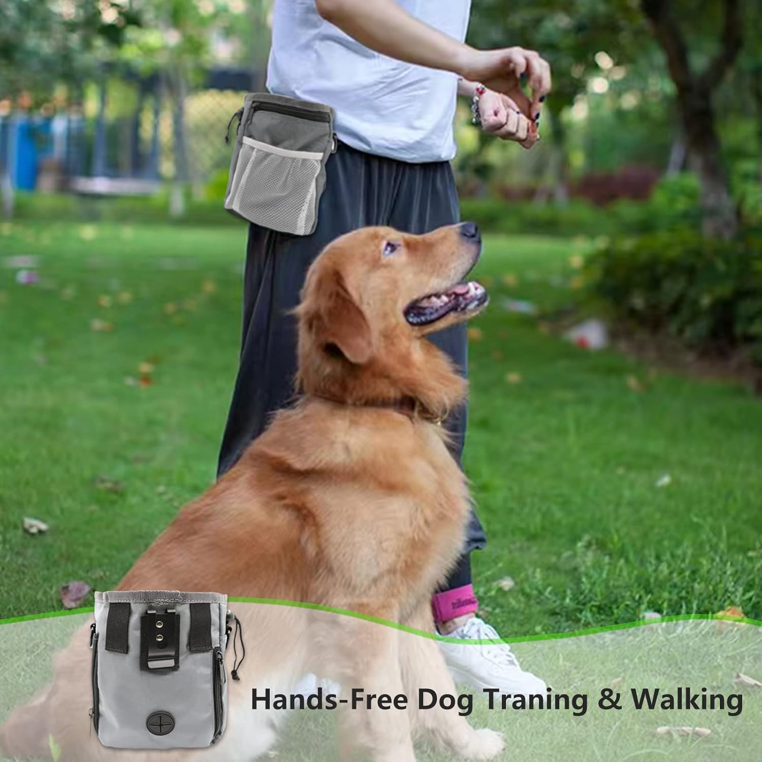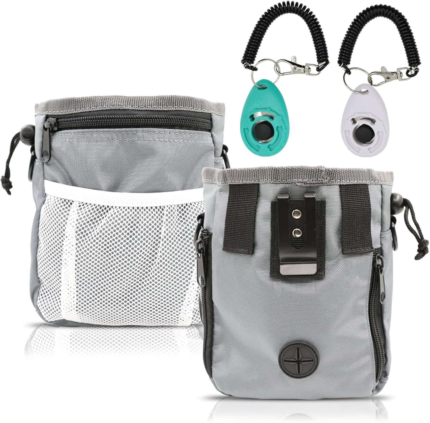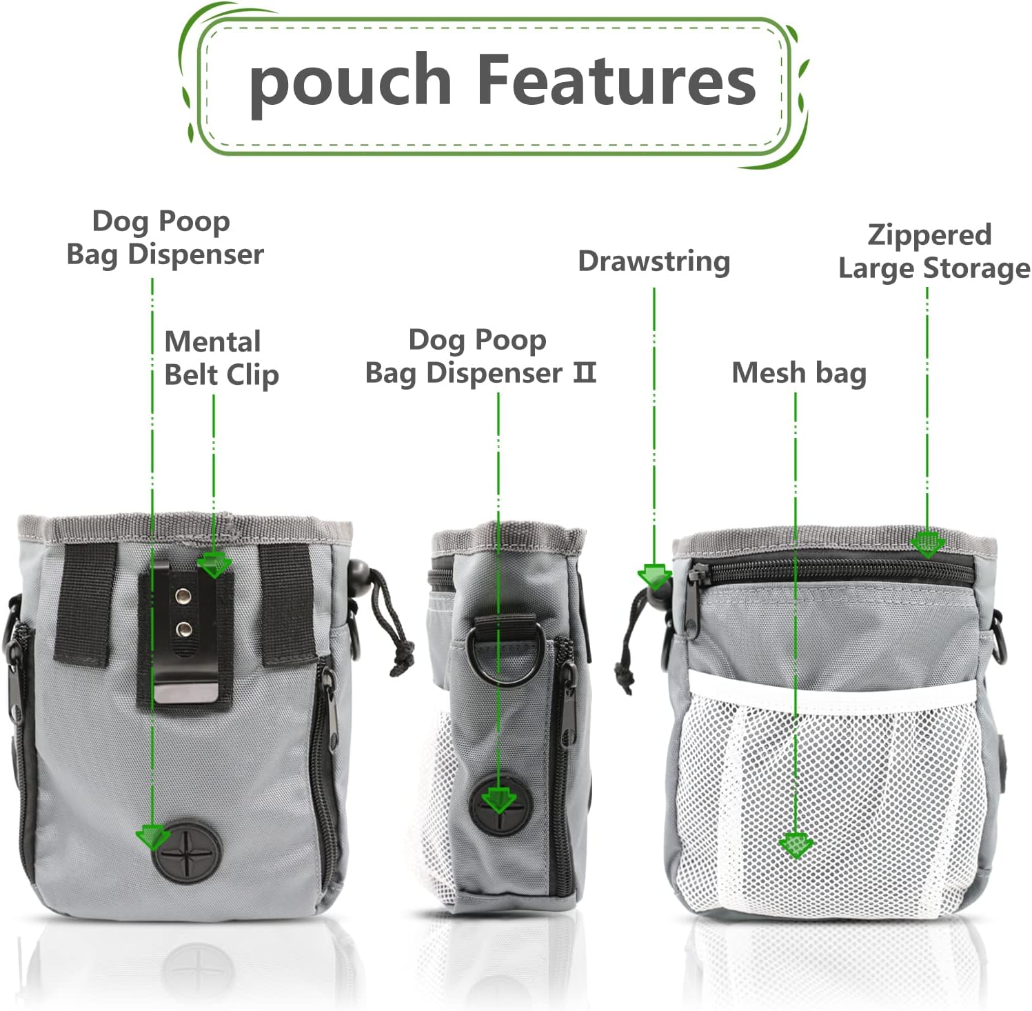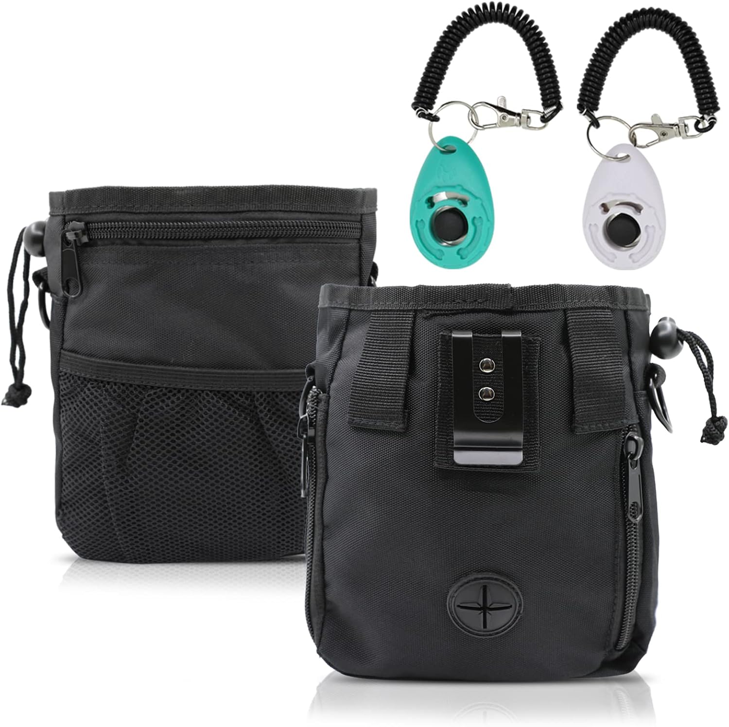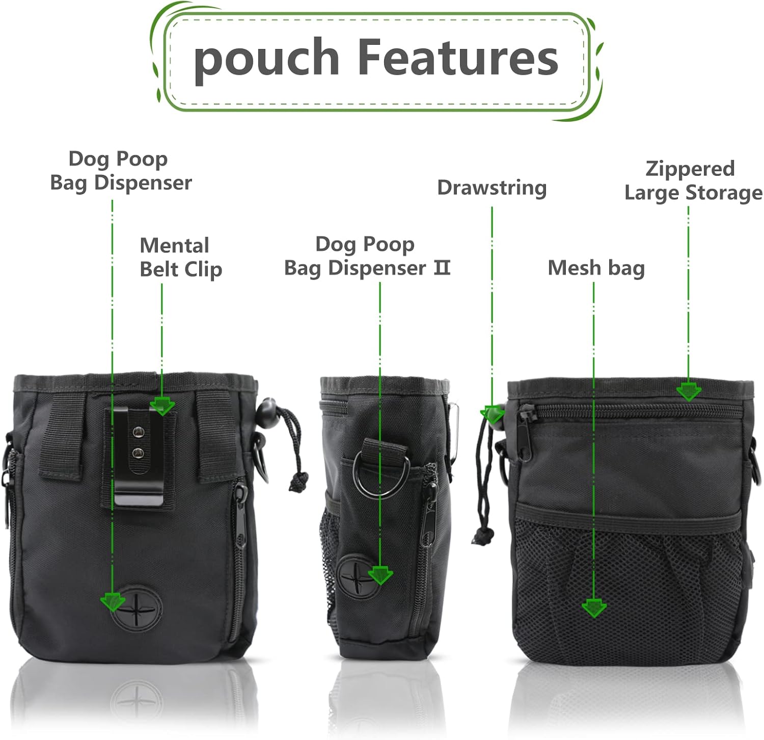 MGKSHADOW Dog Treat Pouch 1pc, Pet Training Clicker 2 pcs, Pet Treat Pouch, Built-in Poop Bag Dispenser (Black)