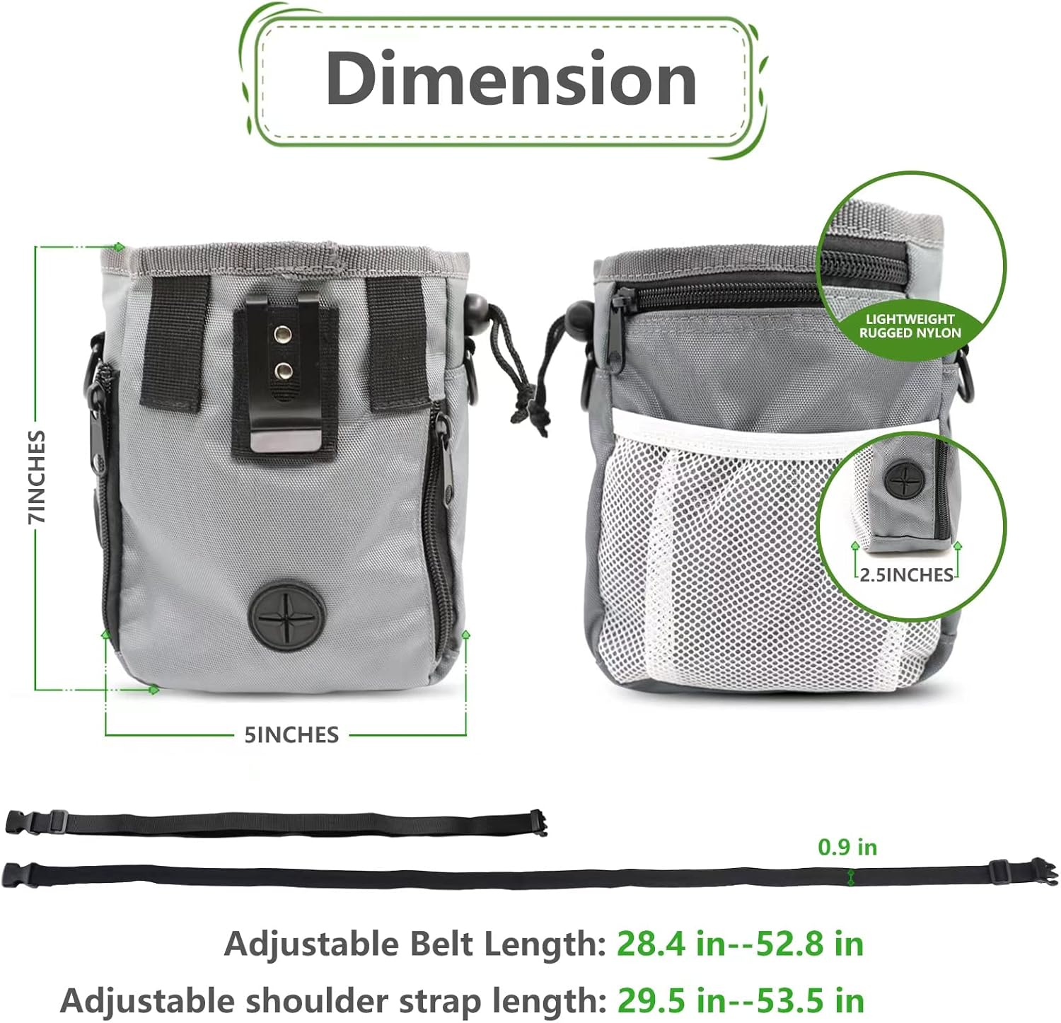 - 【Package】: include 1 dog treat bags training pouch, 2 dog training clicker, 1 shoulder strap, 1 waist belt.