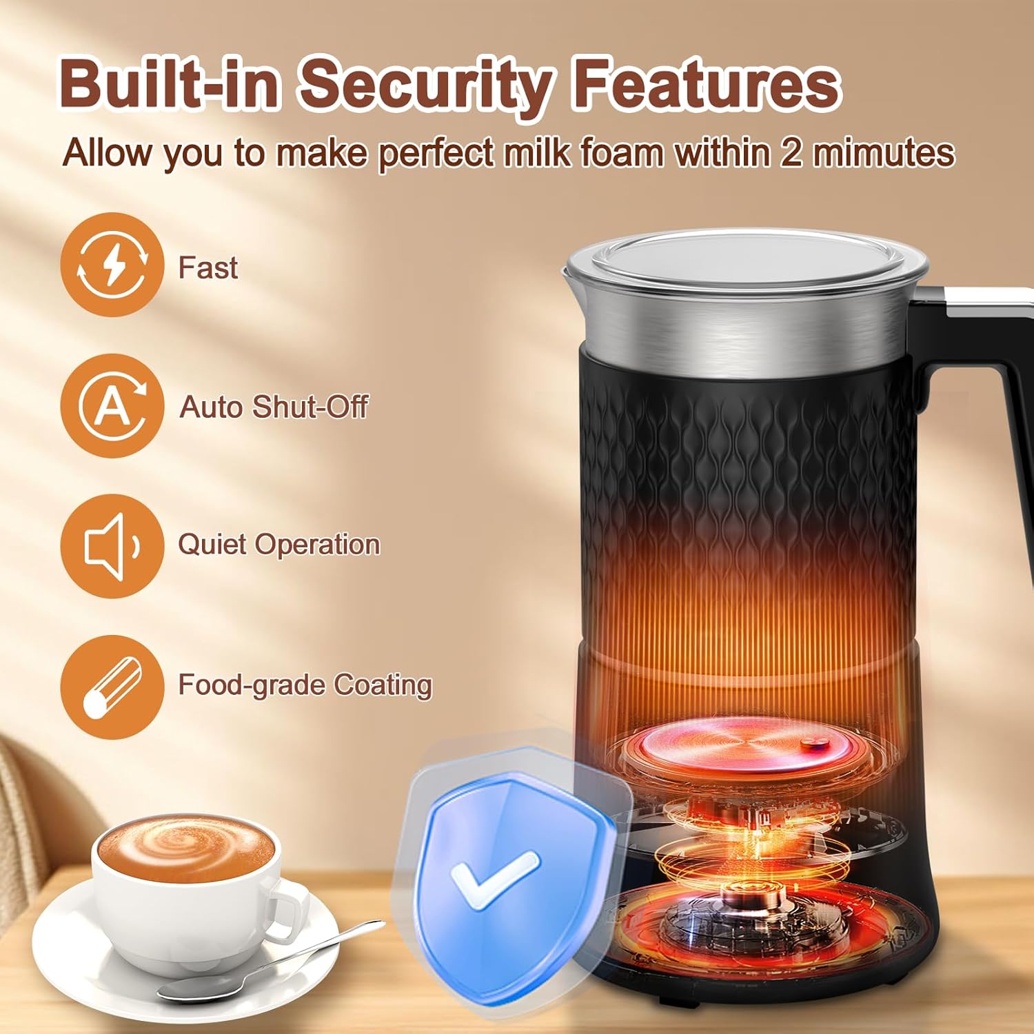 5 In 1 Electric Milk Frother and Steamer - 11.8oz/350ml Hot & Cold Foam Maker and Automatic Split Milk