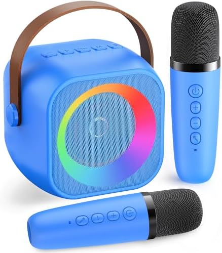 Mini Karaoke Machine for Kids Adults: Portable Bluetooth Karaoke Speaker with 2 Wireless Mics and Lights, Karaoke Gifts for Girls Boys Ages 4-12+ Years Old Christmas Birthday Home Party(Navy Blue)PL17-B0DRD56NJ7