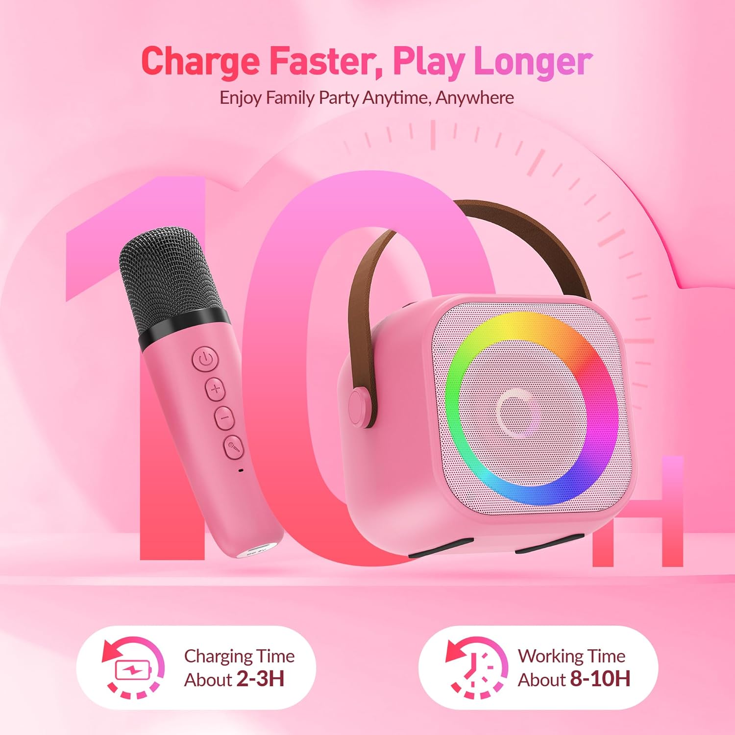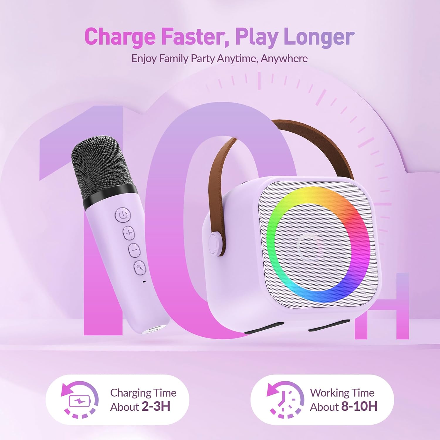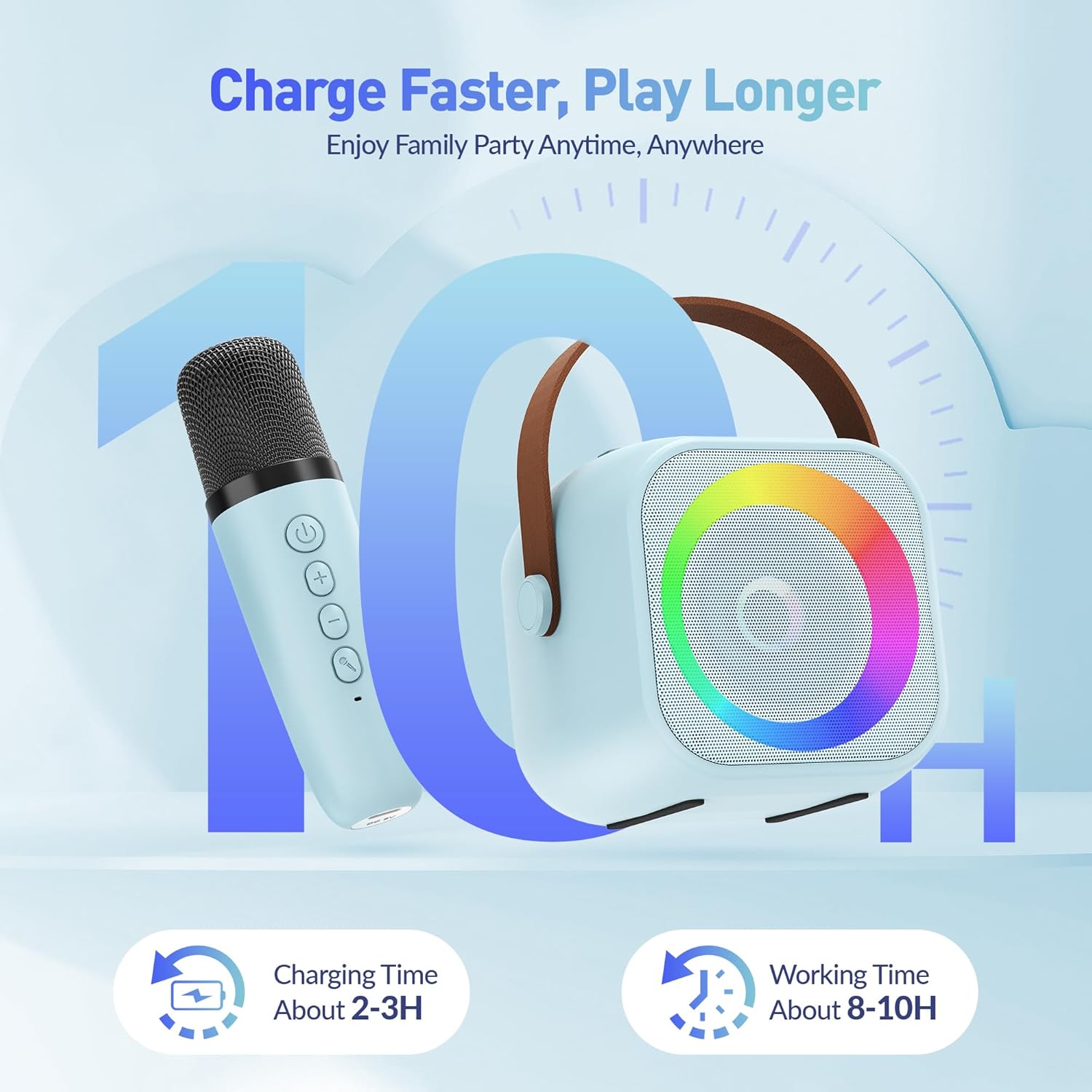 Crystal Clear Sound for Everyone: This mini portable Bluetooth karaoke machine is designed to deliver impressive HI-FI sound, making it the perfect companion for kids and adults alike. Whether you're hosting a home party, a family birthday celebration, or a festive Christmas gathering, this compact speaker provides vibrant, crystal-clear audio that enhances every occasion. Its easy-to-carry design ensures you can take it anywhere, adding joy to any event