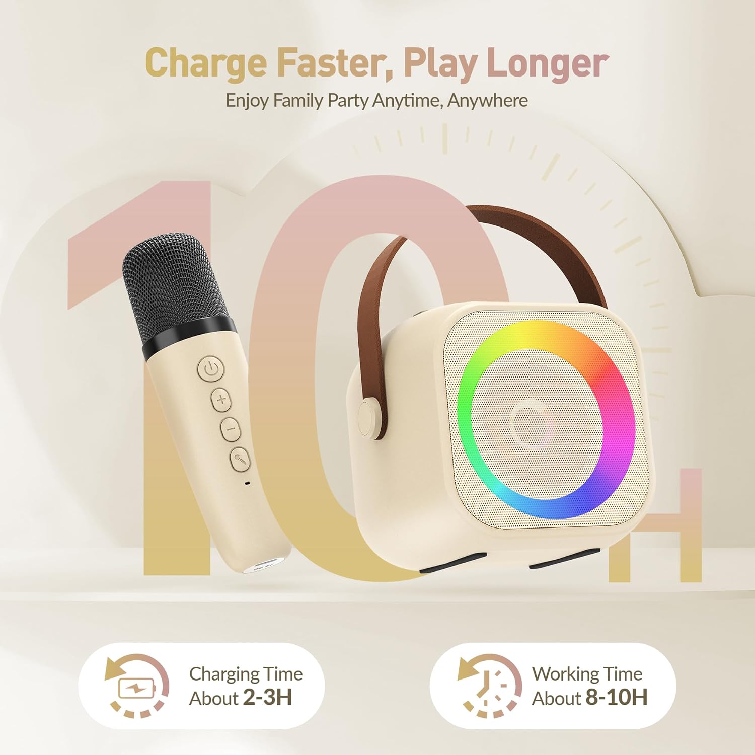 Non-Stop Fun with Long Battery Life: Enjoy up to 10 hours of continuous playtime on a single charge with this portable karaoke machine. It's ideal for long car rides, family vacations, outdoor gatherings, or karaoke marathons at home. Whether it's a Halloween party, Thanksgiving dinner, or New Year's Eve bash, this speaker ensures the fun never stops. The lightweight, compact design makes it super convenient for on-the-go entertainment—perfect for kids' outdoor playdates or impromptu family gatherings
