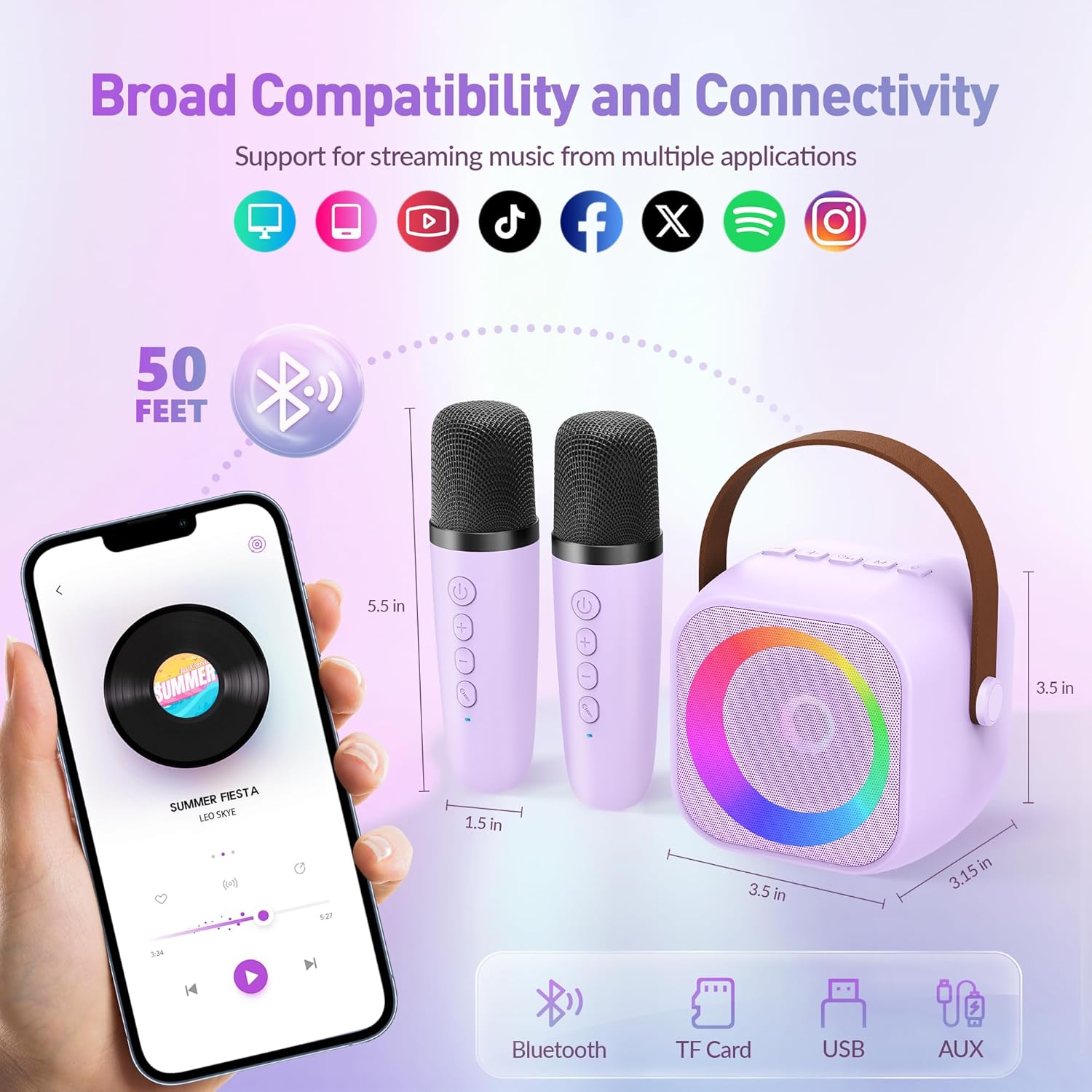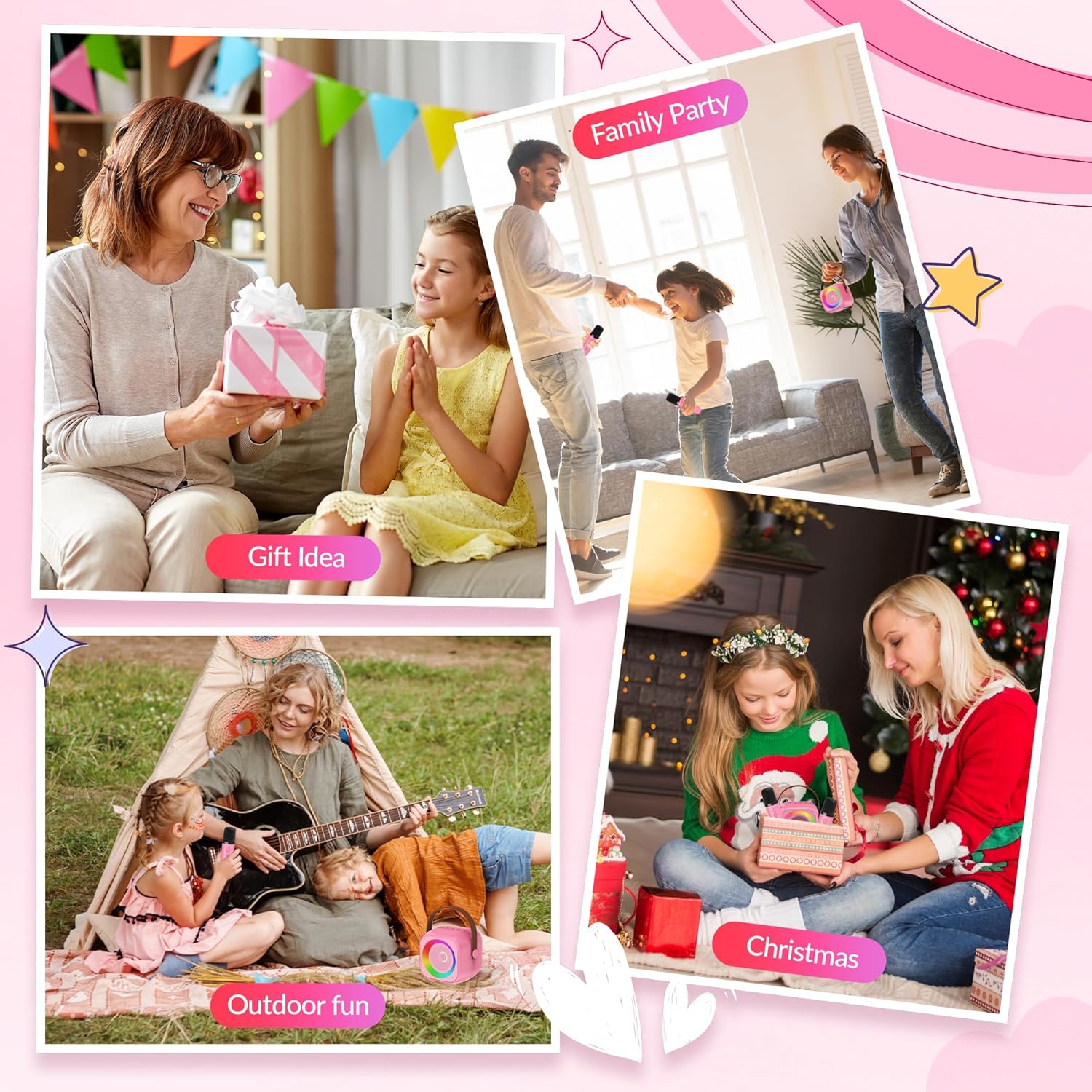 Perfect Gift for Kids & Adults: The ideal gift for both kids (ages 4+) and adults who love singing, this portable Bluetooth karaoke machine with dual microphones is perfect for birthdays, Christmas, Thanksgiving, or any special occasion. Its mini, portable design makes it easy to carry to family events, kids' playdates, or holiday get-togethers. Whether you’re hosting a New Year’s celebration or just having fun at home, this speaker adds endless enjoyment to any activity or celebration