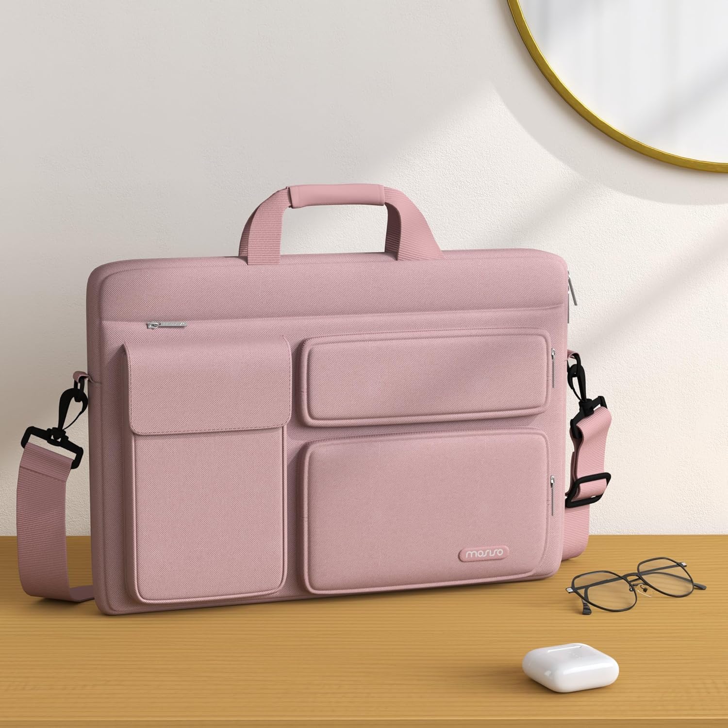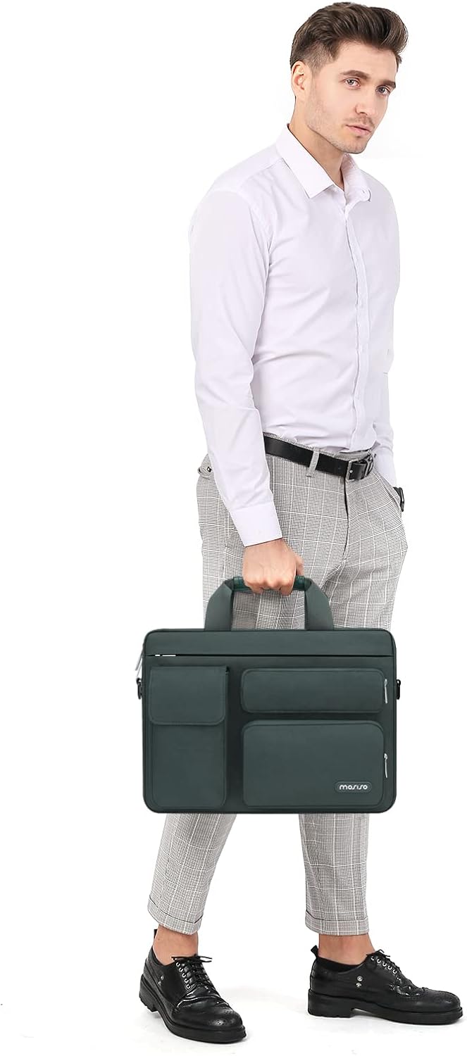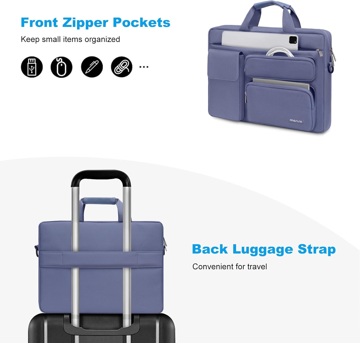 - The main inner compartment holds your laptop and other important things. 2 raised & 1 flapover & 1 horizontal pockets are convenient for quick-access and store cell phone, pen slots, wallet, keys and other small items. Multifuncional 4 front pockets design laptop shoulder bag enables you to carry your laptop/notebook/ultrabook computer in a uniquely sleek style.