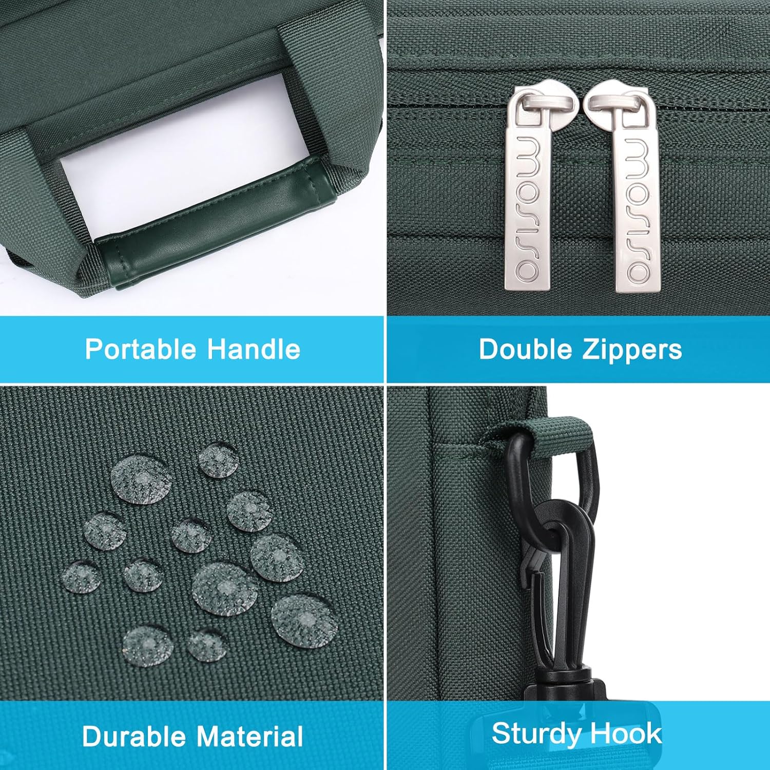 MOSISO Laptop Bag 13.3 inch, 13-13.3 inch Computer Shoulder Bag Compatible with MacBook Air/Pro 13/Pro 14, HP Dell ASUS Notebook &2 Raised&1 Flapover&1 Horizontal Pocket&Handle&Belt, Black