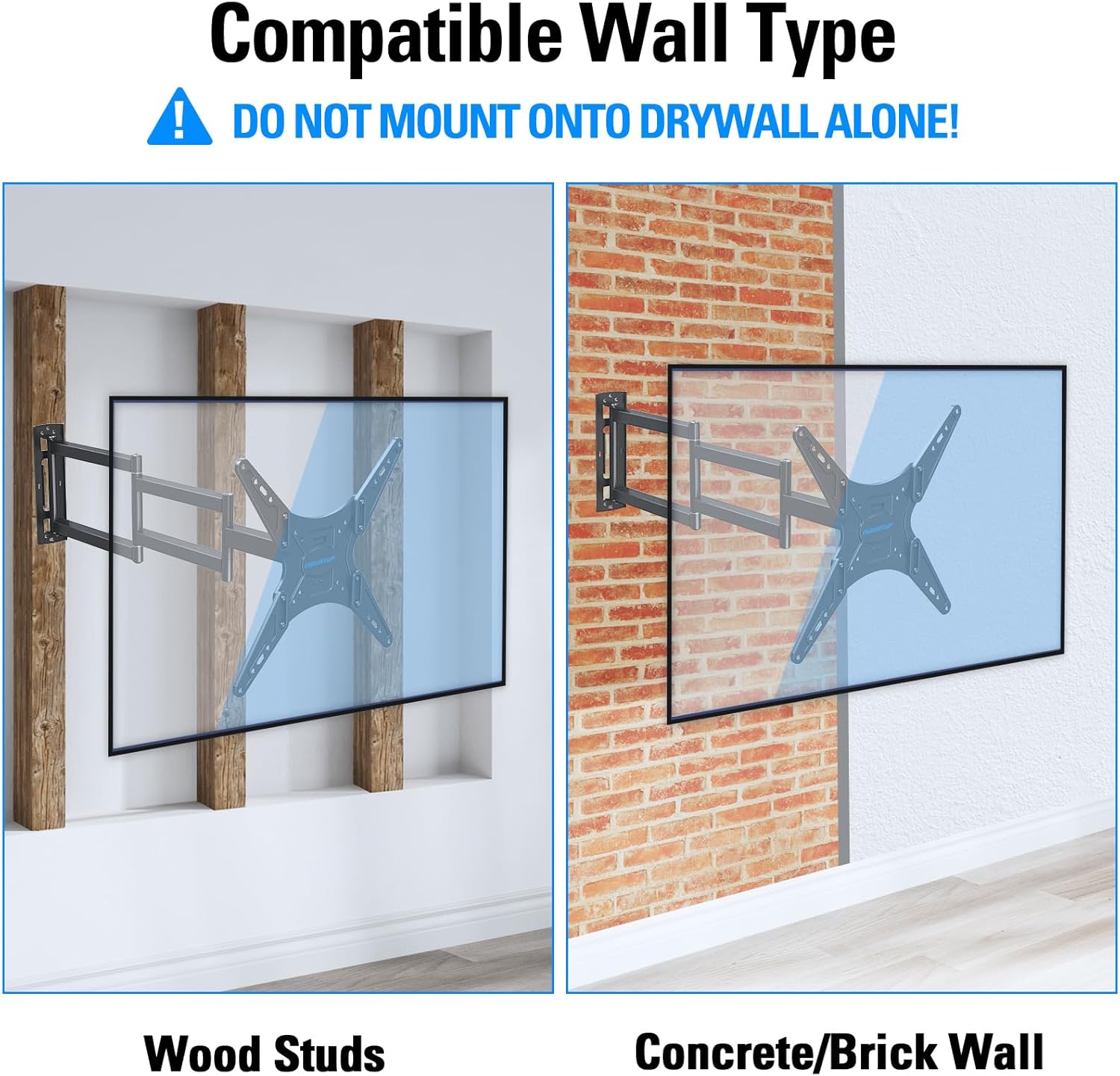 - Easy to Install: Single stud TV mount design makes the installation a breeze. MOUNTUP TV wall mount comes with clear instructions and all necessary hardware kits for quick 3-step installation. Please note that all our TV mounts can not be installed on drywall alone. Concrete wall anchors will be sent per request