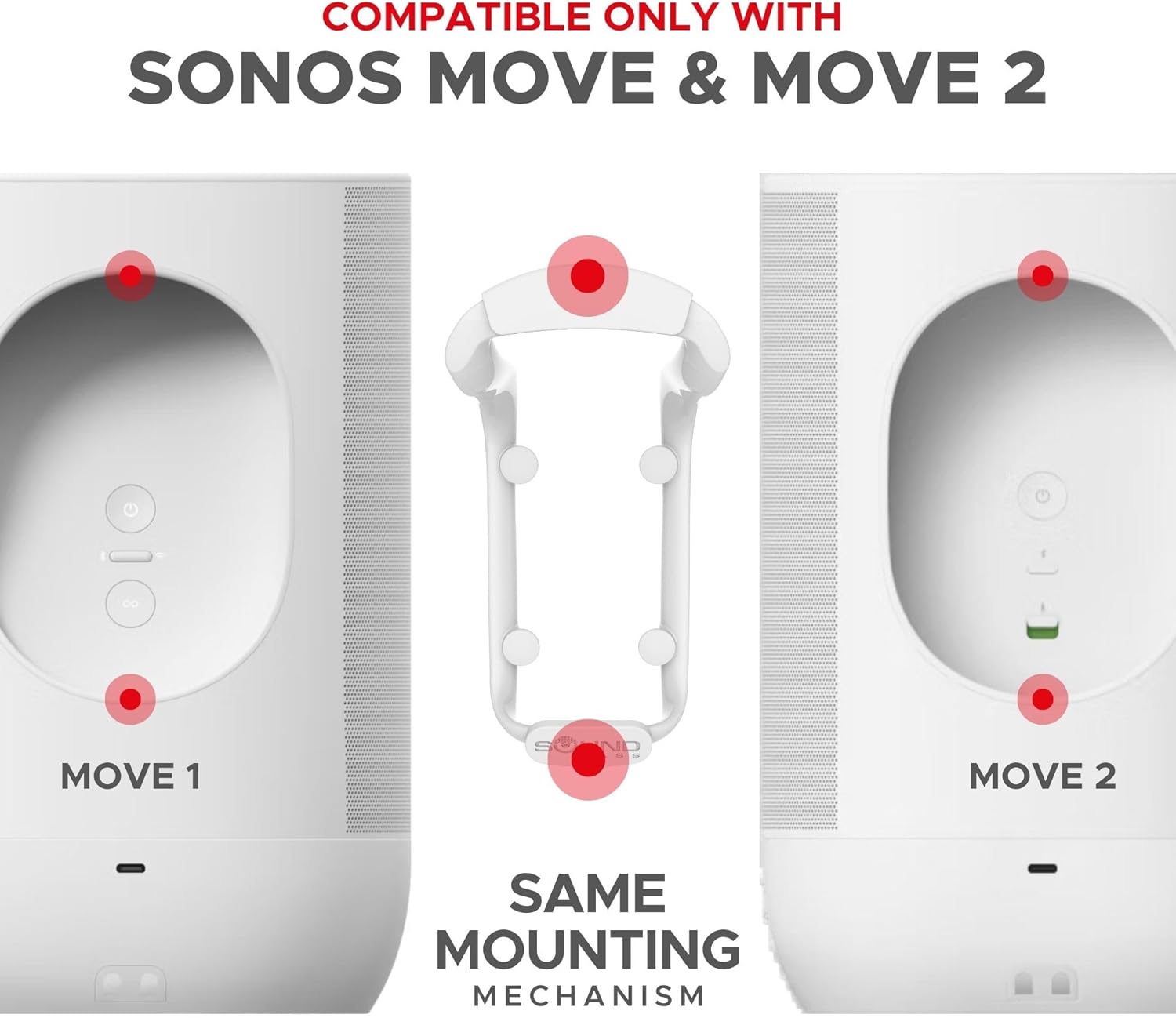 •  MOVE IT NOW - Now you can mount your Sonos Move or Move 2 speaker securely and safely indoors or out. Perfect for BBQs, patios, balconies, gardens, garages, sheds, workshops, bathrooms, bars, and more. Use our mount to free up valuable surface space in your home. Once the wall mount is fitted, the Sonos Move is easily mounted and removed.