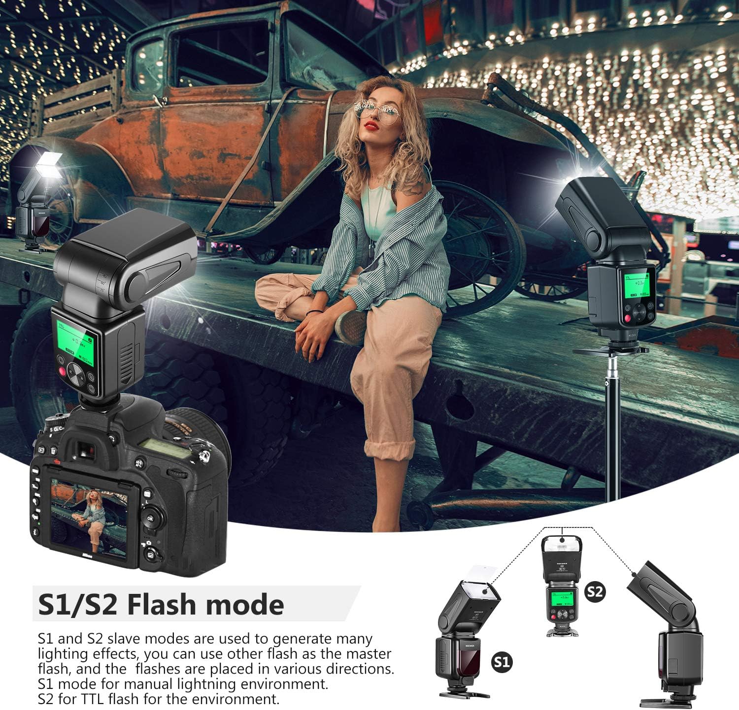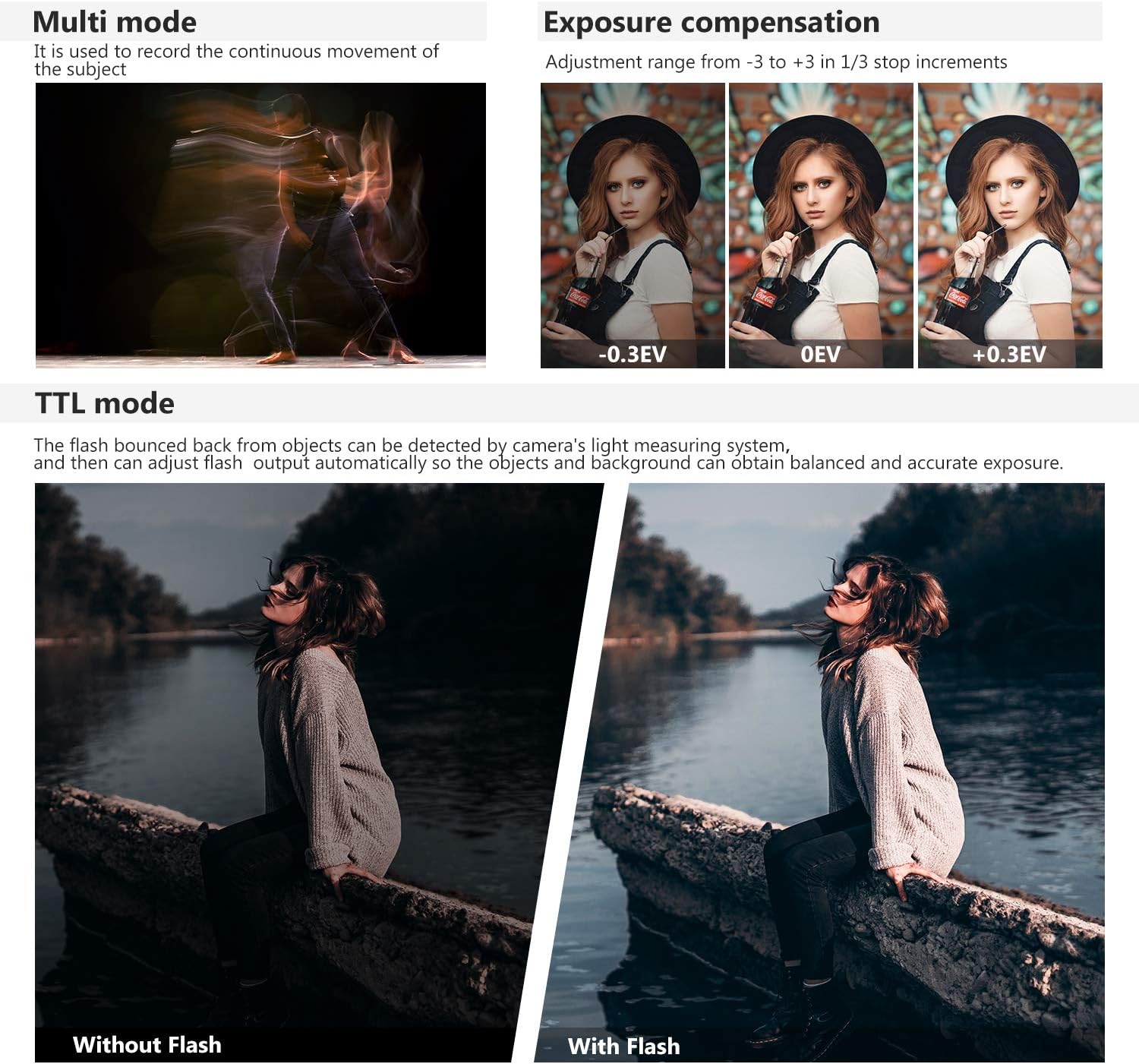 - 【Versatile & Quality Flash Effects】 Flash head can swivel up and down between -7° and 90° and rotate 270° for easy flash bouncing. Flash coverage can be adjusted automatically or manually between 24-180mm based on the lens focal length. The included diffuser and reflector create soft lighting. An LCD screen and a PC sync jack are also included