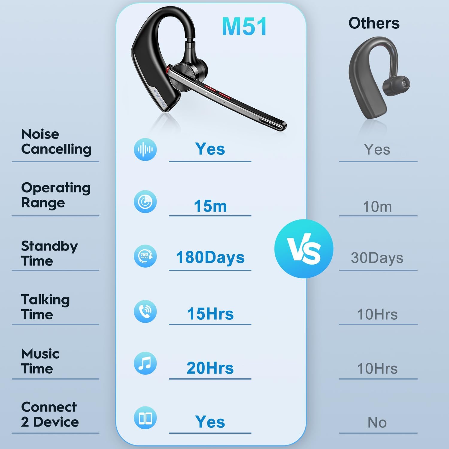 [Dual Microphone Noise Reduction]The noise canceling earpiece with enc dual-mic noise cancellation.CVC8.0 & ENC blocks 96% noise effectively eliminates echo for clearer calls