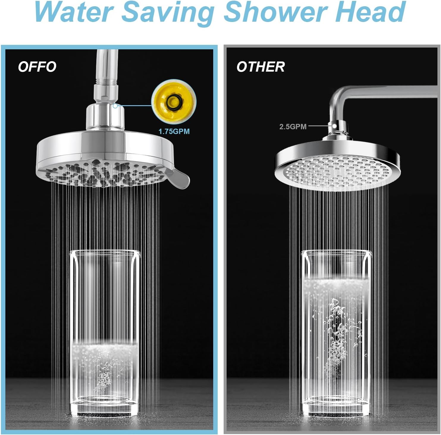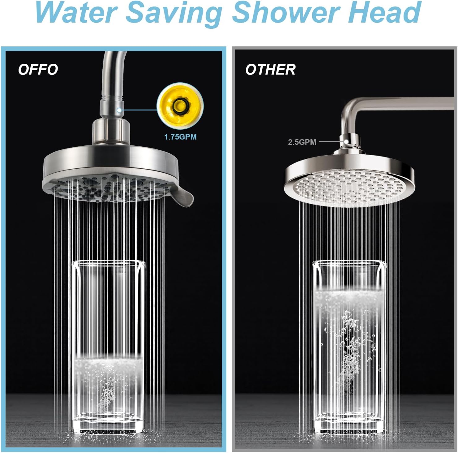 OFFO Shower Head, High Pressure Shower Head with Pause Mode, 9 Mode Fixed Showerheads for Strong Water Flow & Relaxing Shower Experience,Brushed Nickel