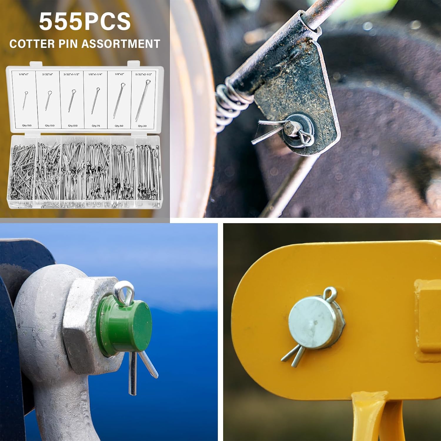 WIDE APPLICATION - R cotter pins are widely use in heavy machine, such as weeding trailer, trucks, campers, lawnmower, garden equipment, etc.