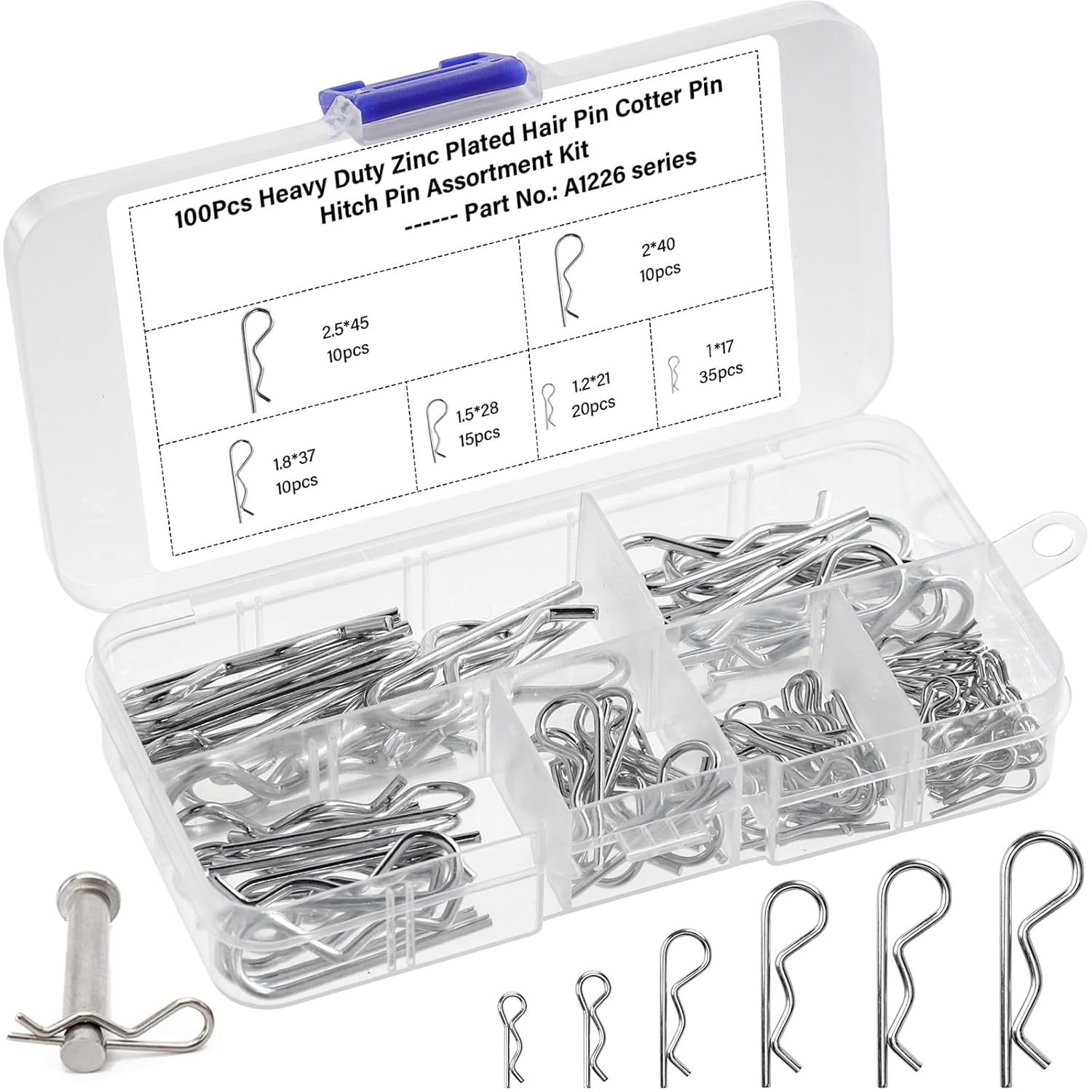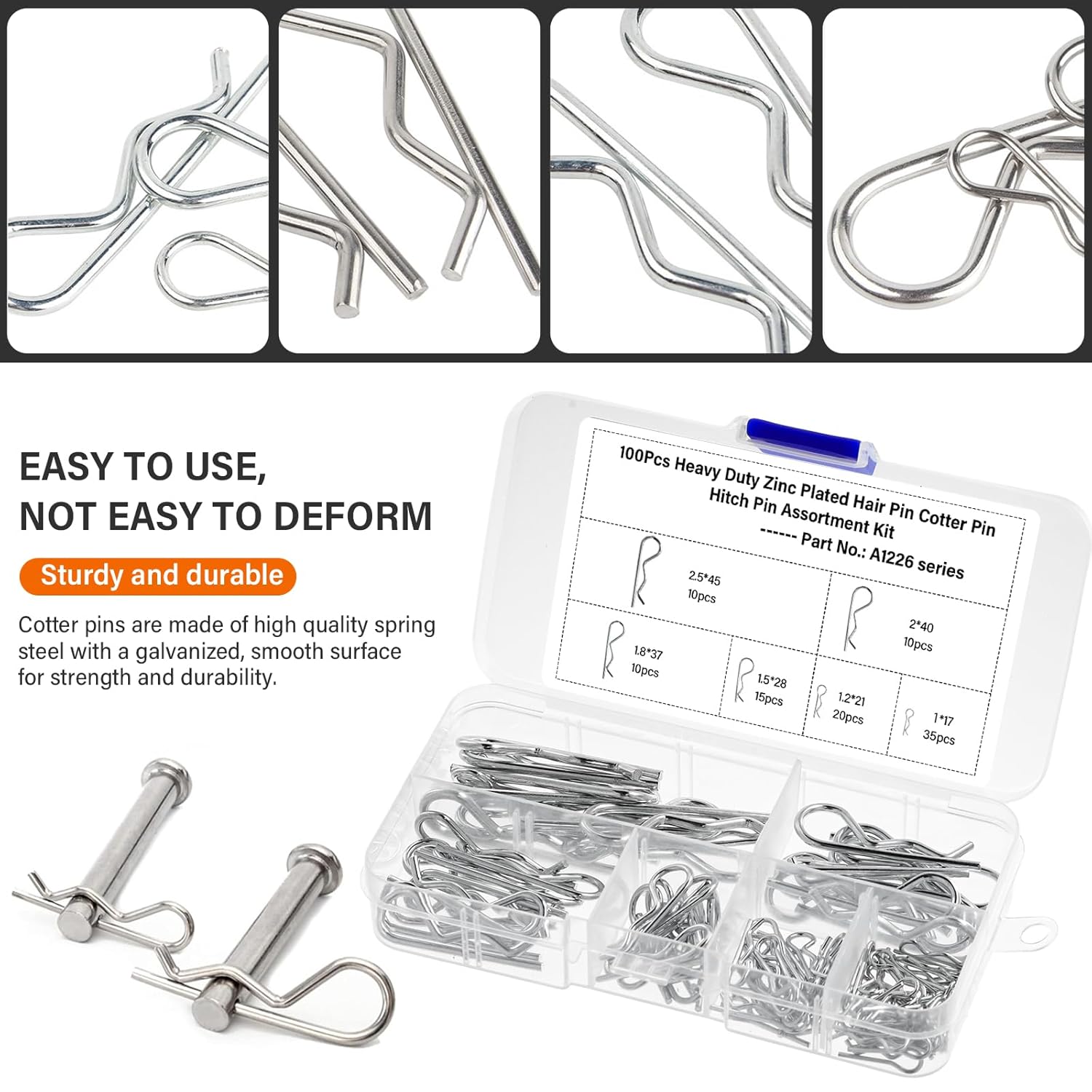 Easy to Use - Pin hitch pin assortment kit adopts heavy-duty principle design, high hardness, good elasticity, not easy to deform.