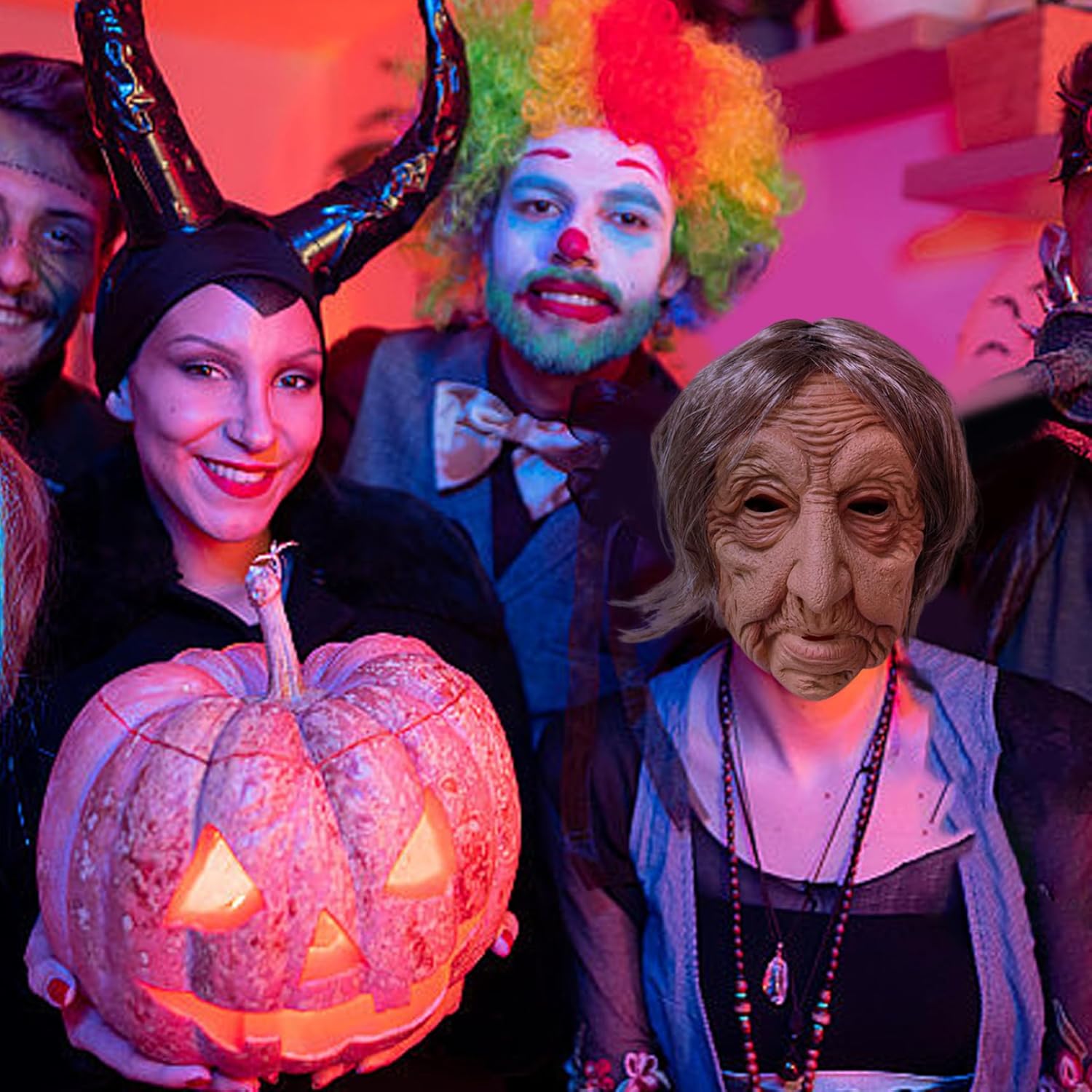 Old Lady Mask Realistic Latex Halloween Old Woman Mask with Short Hair Creepy Accessory for Halloween Costume Party offers a frighteningly realistic addition to your collection of Halloween Masks and Scary Masks, crafted with premium latex to create a highly detailed and Horror Mask that enhances your Halloween Costume; featuring lifelike wrinkles and short gray hair, this Creepy Mask brings an authentic Old Woman Mask look that is perfect for Halloween Decorations or any horror-themed event, combining comfort with breathability for long lasting wear while maintaining durability and easy cleaning for repeated uses.
