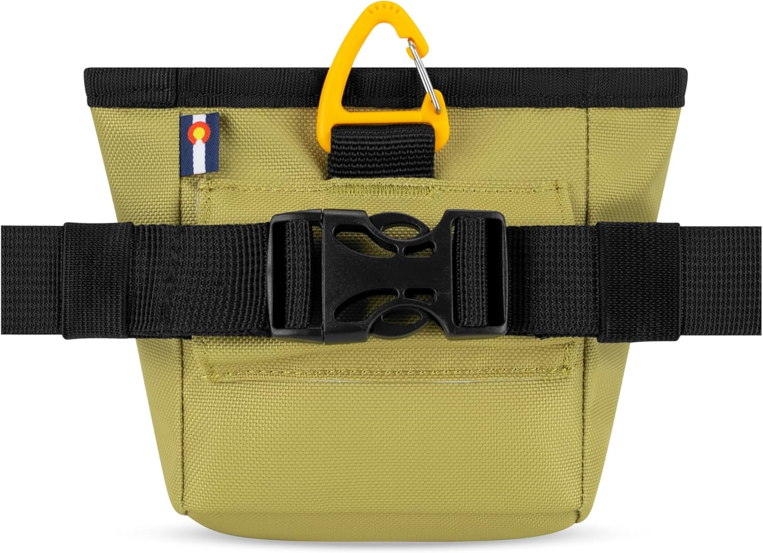 - FUNCTIONALITY & DURABILITY: Crafted with a vegan, non-toxic, recycled fabric that is water- resistant. The Goodie Treat Bag repurposes 3 plastic bottles into the perfect training treat pouch. Lightweight and easy to wear so that you have quick access to treats to reward your dog's good behavior while training. This bag can be worn around the waist, clipped onto a belt-loop, or threaded onto your personal belt. If there are any product issues or defects contact us so we can make it right!