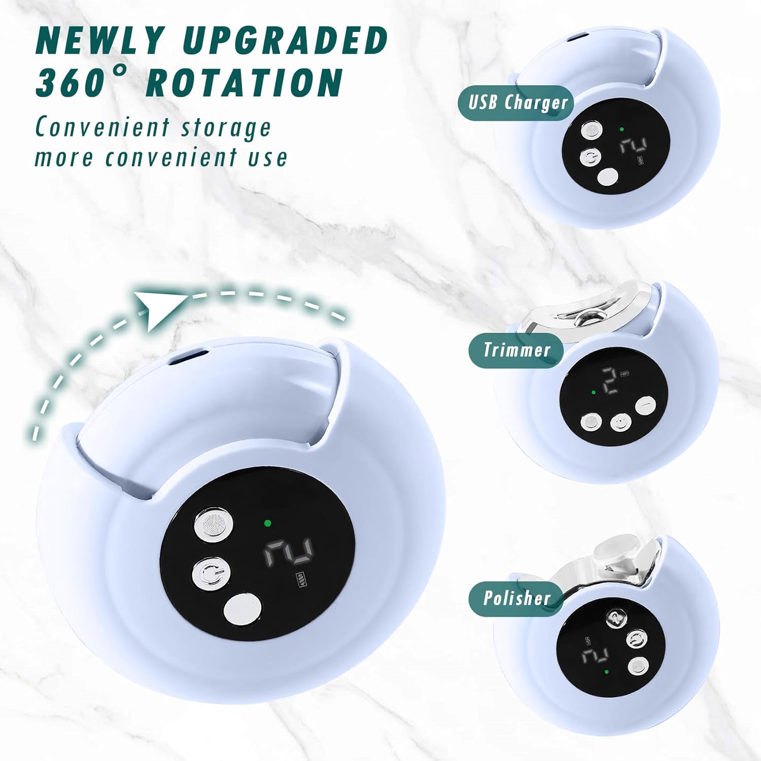 Automatic Storage of Nail Clippings: Our Electric Nail Trimmer has a built-in debris storage box, which allows you to automatically collect nail clippings while trimming your nails to prevent them from flying around. Just press the upper part of the window to easily open and dump the nail clippings. This electric nail trimmer can be used anytime and anywhere, which is very convenient and tidy.