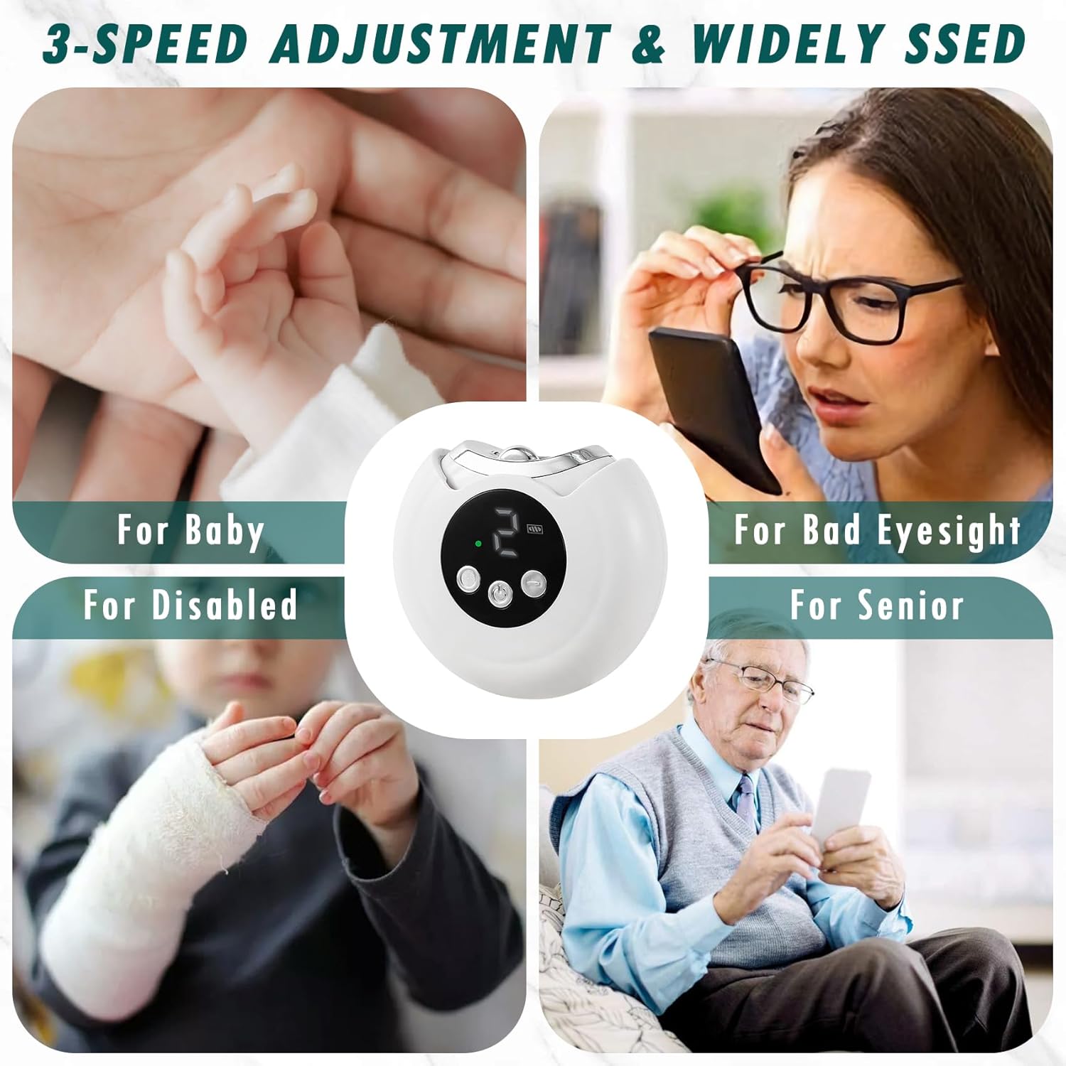 Three-Speed Adjustable Design: The Electric Nail Trimmer has three adjustable levels: low, medium and high, which are suitable for children, adults and the elderly respectively. You can adjust it freely according to your needs. It uses a typec charging interface, which can last for a long time. Once fully charged, it can last up to 90 days and can work continuously for about 2 hours.