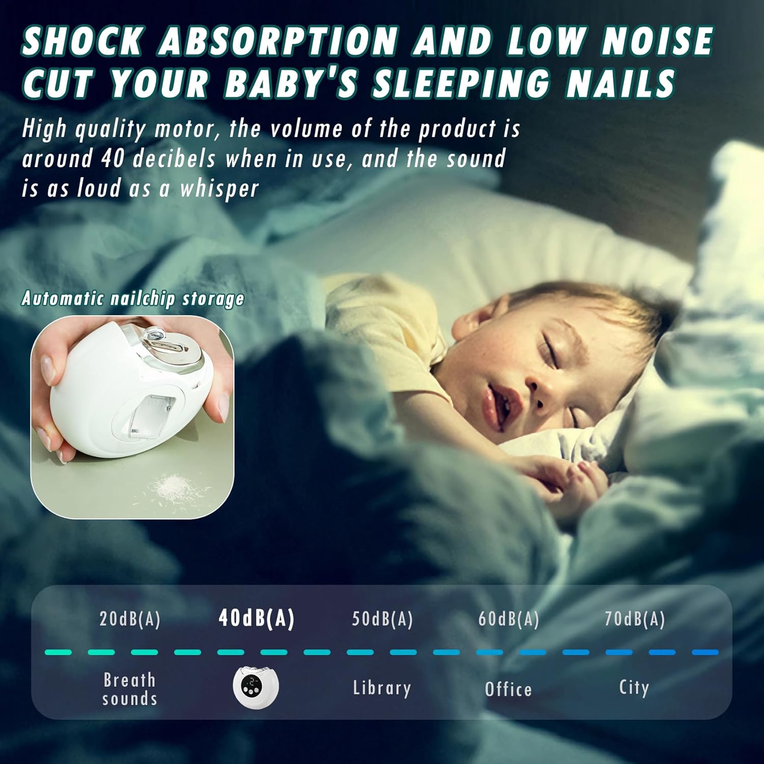 LED Auxiliary Lighting and Quiet Working: Our Automatic Nail Trimmer have a low noises design, which is especially suitable for babies and children who are sensitive to noises. In addition, it also has an auxiliary lighting function, which can be used safely even in dim light environments without disturbing people's rest.