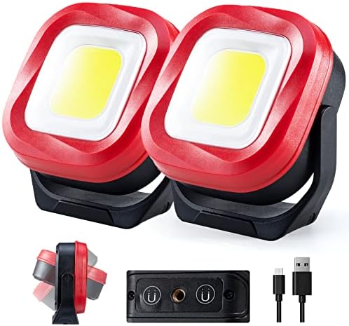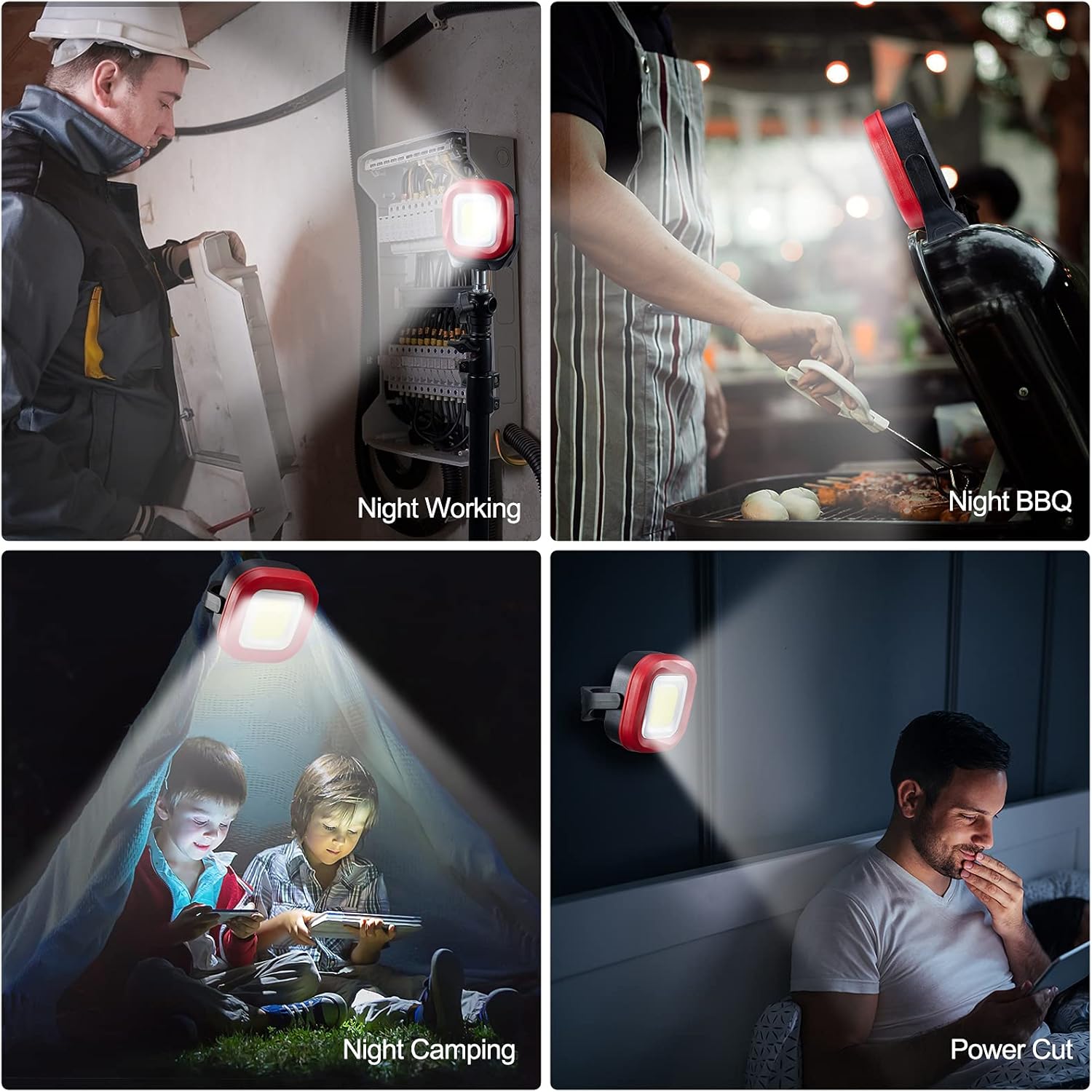 【DURABLE & PORTABLE】This led work light is made of hard rubber, anti-sweat and anti-slip, prolong the life of the lamp. This led flashlight is compact and easy to carry. The size of work light is 3.9 *3.5 *1.5 inch; Our portable work light can be placed in trouser pockets, storage bags, tool boxes, backpacks