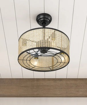 OVE Decors Prima 4-Light Ceiling Fan with Rattan Shade & Remote Control