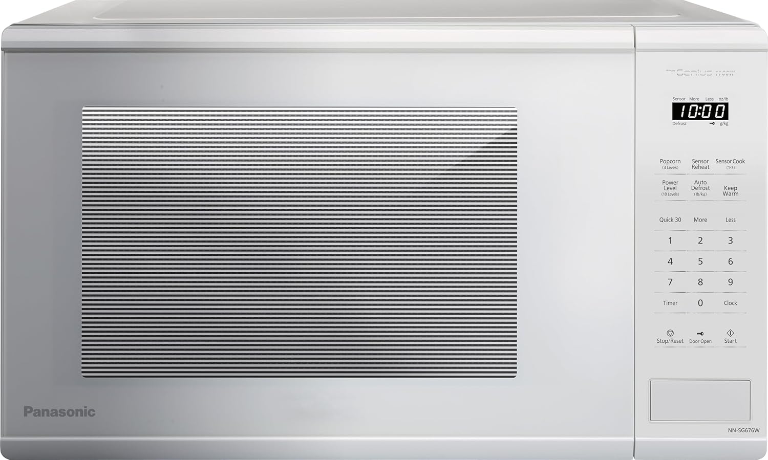 Panasonic NNSG676WC Mid Size Genius 1100 W Microwave Oven, 7 Auto Cook Menus, Child Lock, White