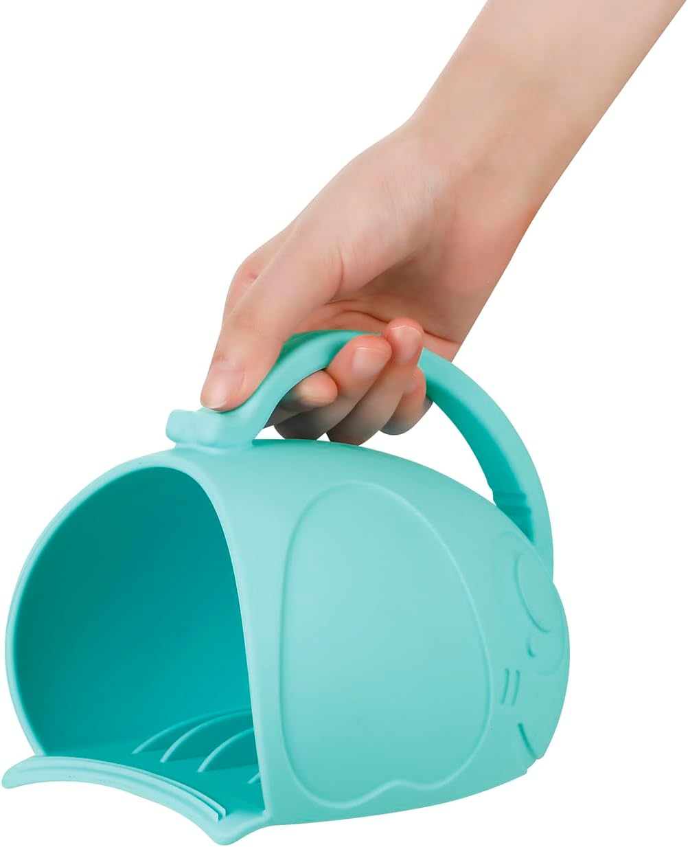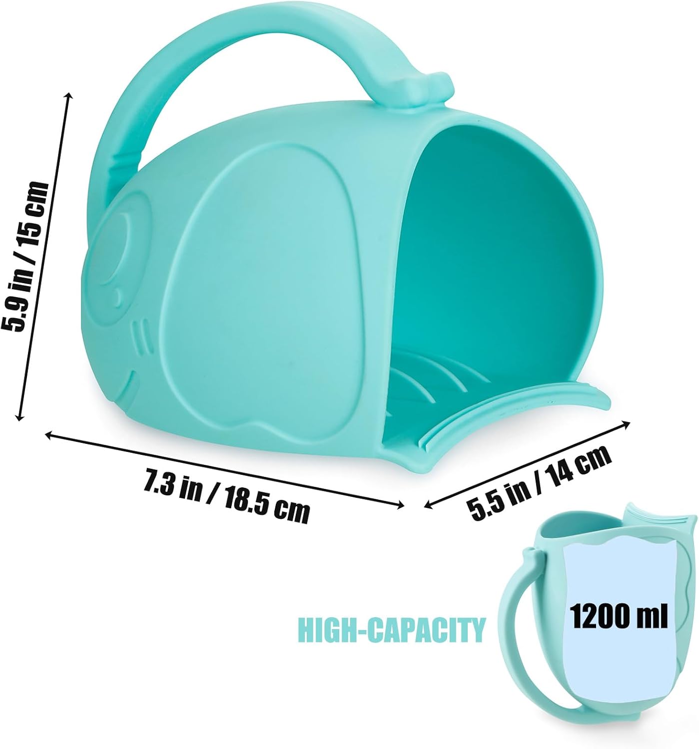 • [ Soft Silicone Design ]: Made from food-grade silicone in calming blue, the baby bath rinse cup features a soft and flexible lip that comfortably fits against your baby's head, preventing water from getting into their eyes or ears. The textured handle ensures a secure grip, allowing for easy and precise pouring.
