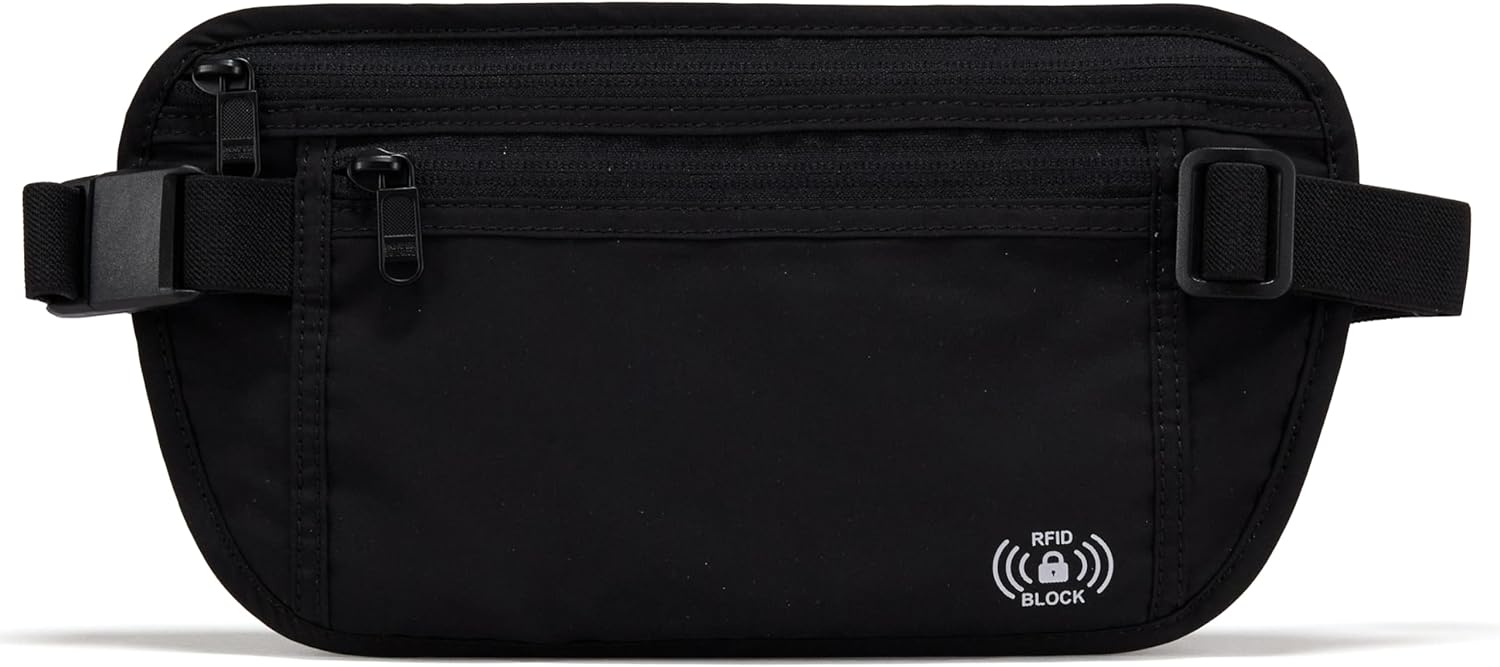 Pander Unisex RFID Anti Theft Waist Pouch Money Belt for Travel, Blocking Hidden Wallet Belt Bag for Women, Protects Your Valuables and Data (Black).PL17-B0D73LJLKQ