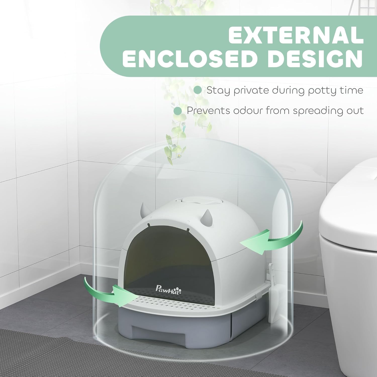 - Simplified Cleaning: Equipped with a bottom drawer and a litter scoop, this kitty litter box for cats promotes easy and quick cleaning without the hassle.