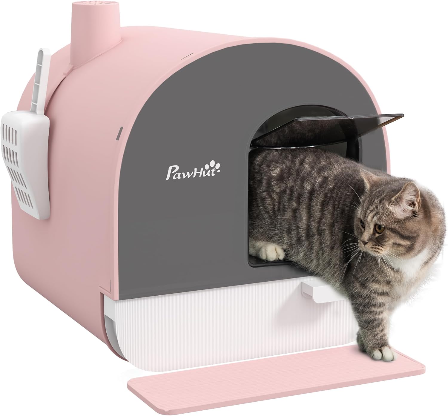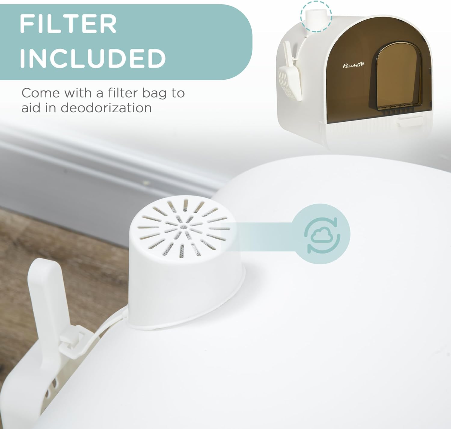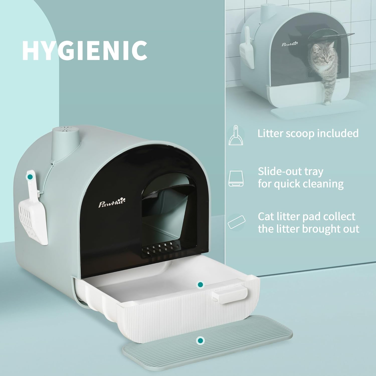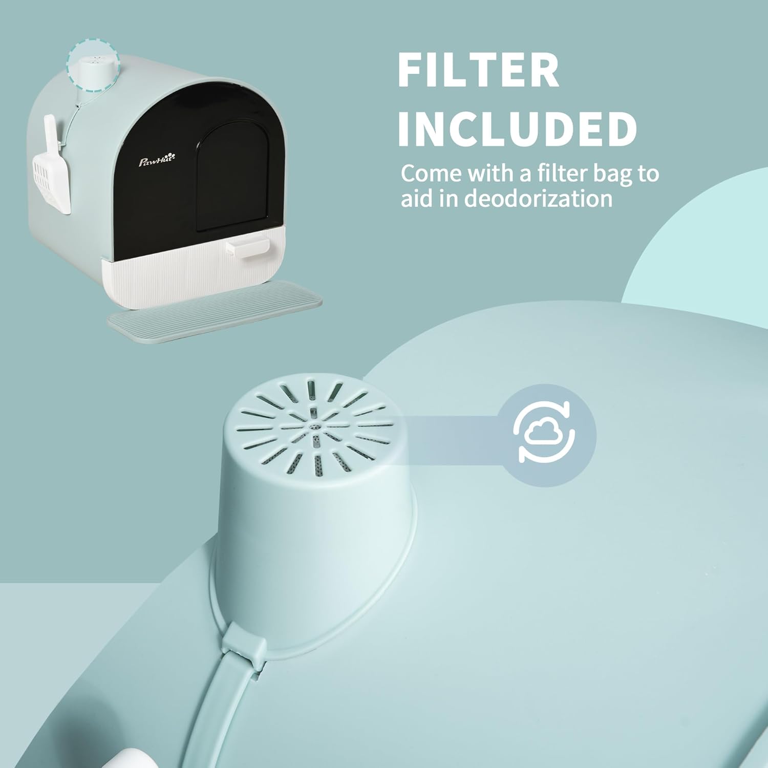 PawHut Large Cat Litter Box with Lid, Enclosed Kitty Litter Box with Slide-Out Tray, Scoop, Filter, Green