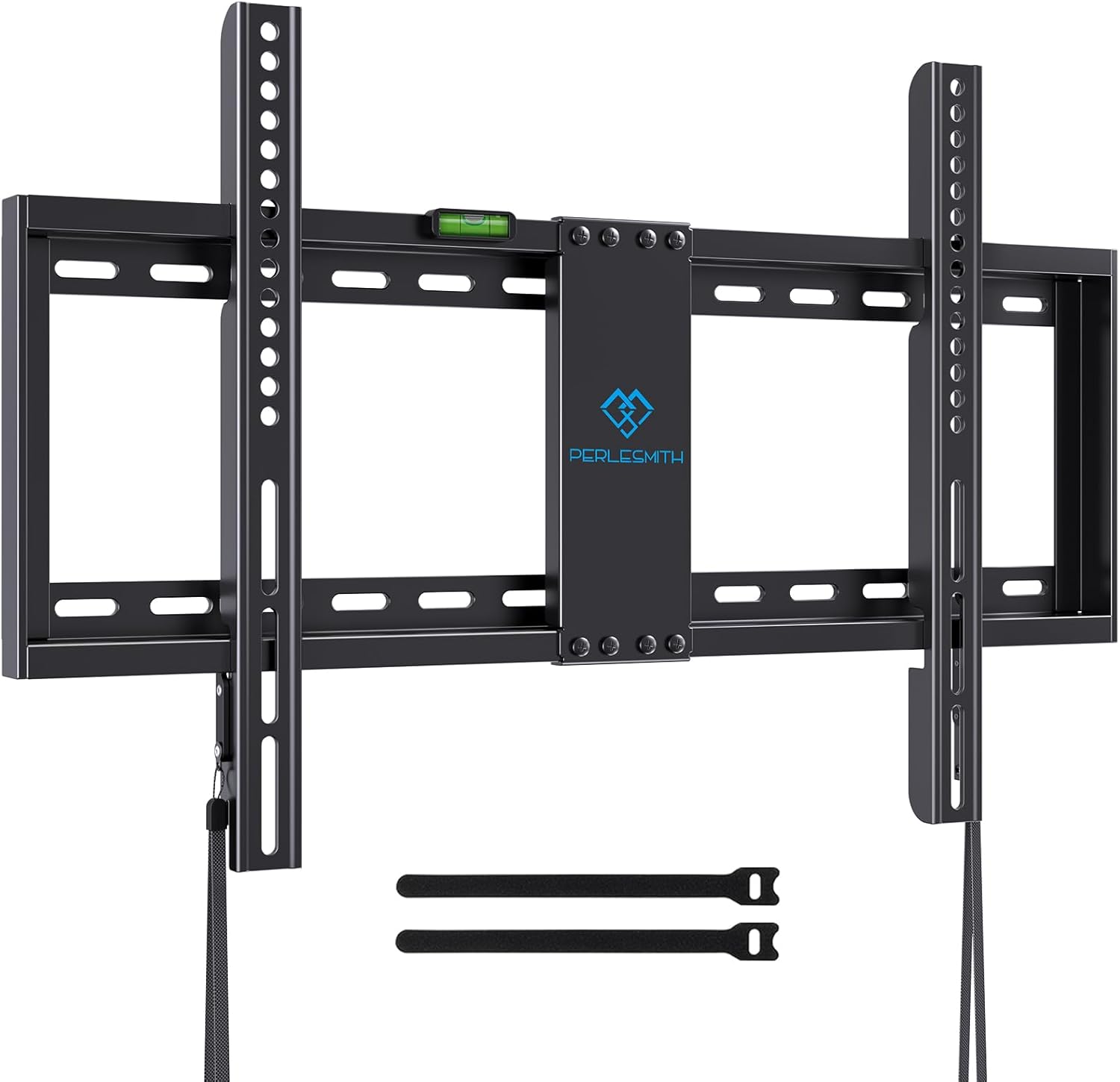 PERLESMITH Fixed TV Wall Mount Bracket Low Profile for 32-82 inch LED, LCD, and OLED Flat Screen TVs - Fits 16”- 24” Wood Studs, Fixed TV Mount with VESA 600 x 400mm Holds up to132lbs (PSLLK1), Black
