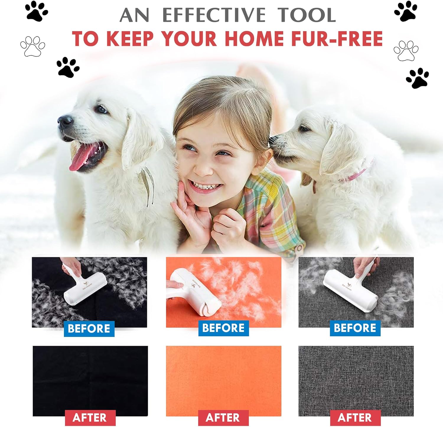 Say goodbye to messy pet hair with The Weaver Reusable Pet Hair Remover Roller. Designed to make fur cleanup quick and hassle-free, this lint roller effortlessly lifts and traps dog and cat hair from furniture, bedding, carpets, and clothes—without any sticky tape or power source. Just roll it back and forth, and the fur gets collected in the built-in chamber for easy disposal. Whether dealing with shedding season or everyday hair build-up, this eco-friendly tool helps keep your home clean and hair-free. The compact and reusable design makes it an essential cleaning accessory for pet owners who value convenience and sustainability.