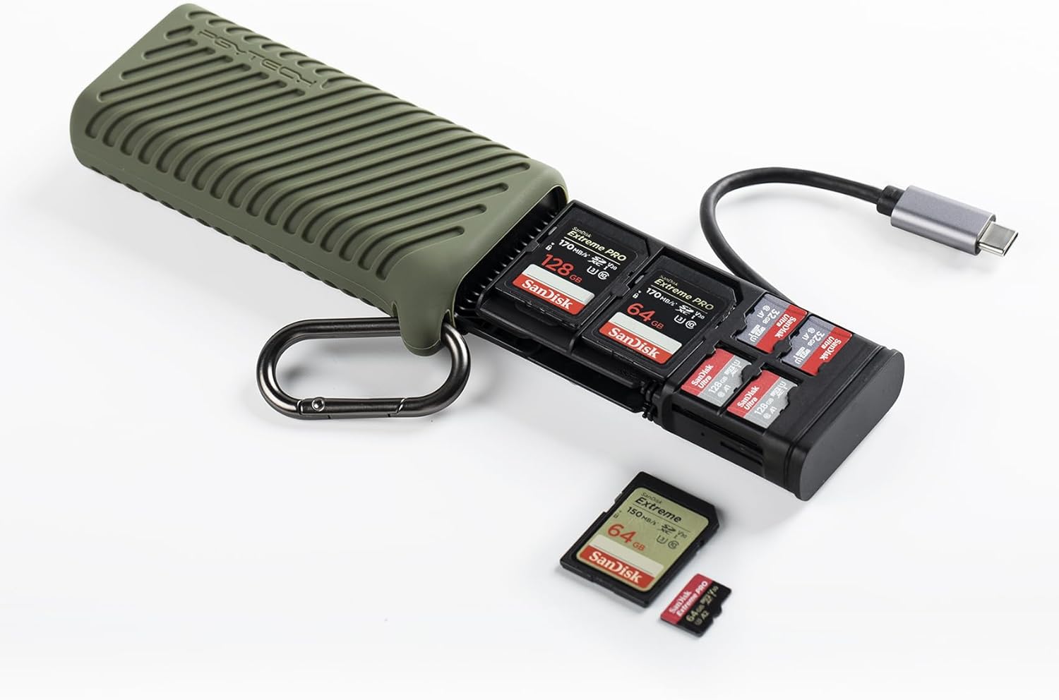 PGYTECH Createmate CFexpress Type B Card Reader 12 in 1 Card Case USB3.2 Gen 2 10Gbps SD Card Reader for Photographers (Green, CFexpress-A)