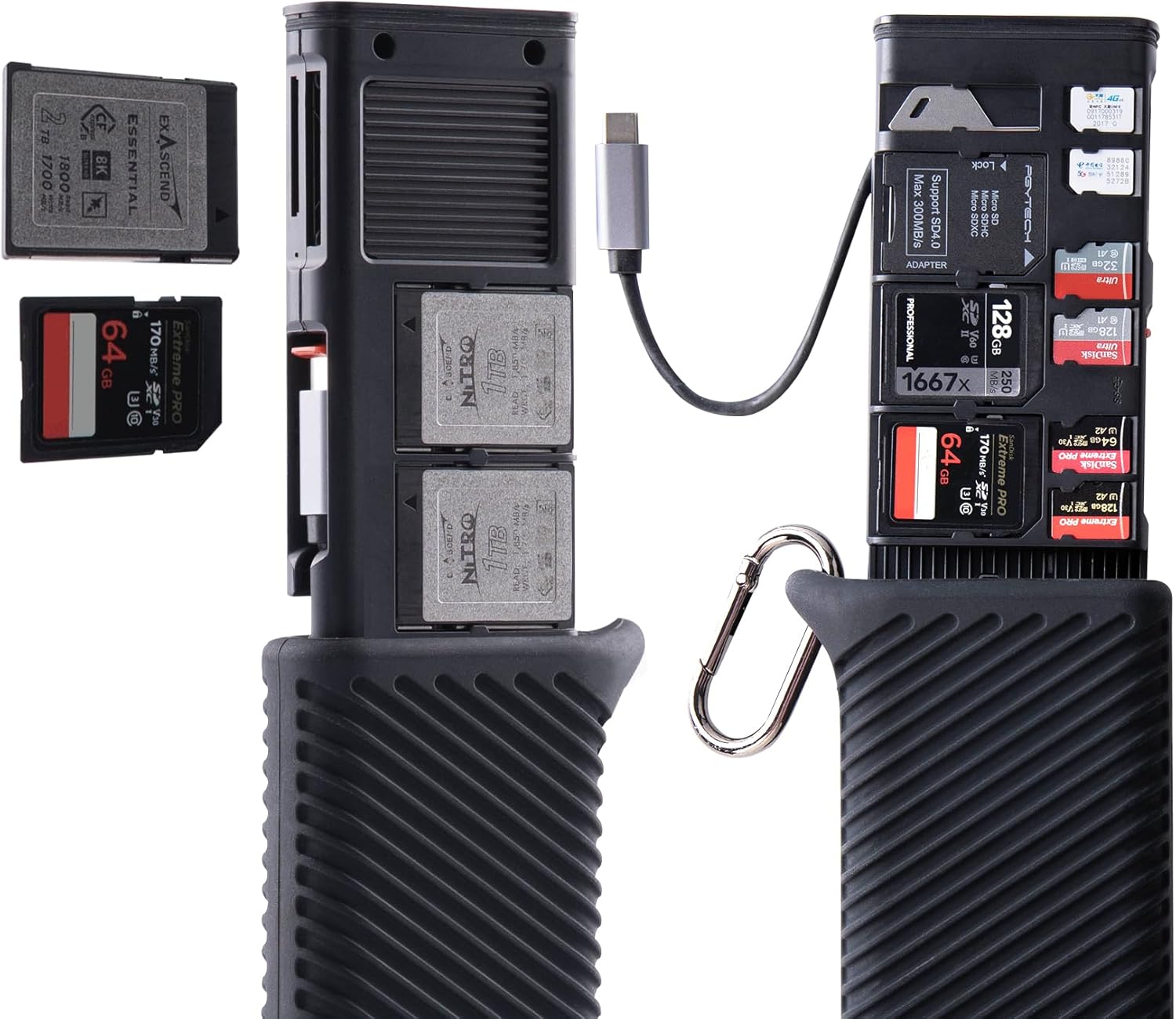【Card Reader& Card Case 2 in 1】Specially designed for CFexpress Type A/B, SD,Micro SD, this product integrates card storage and ultra-high-speed data reading functions. It serves as the reliable companion for photographers who prioritize both efficiency and convenience