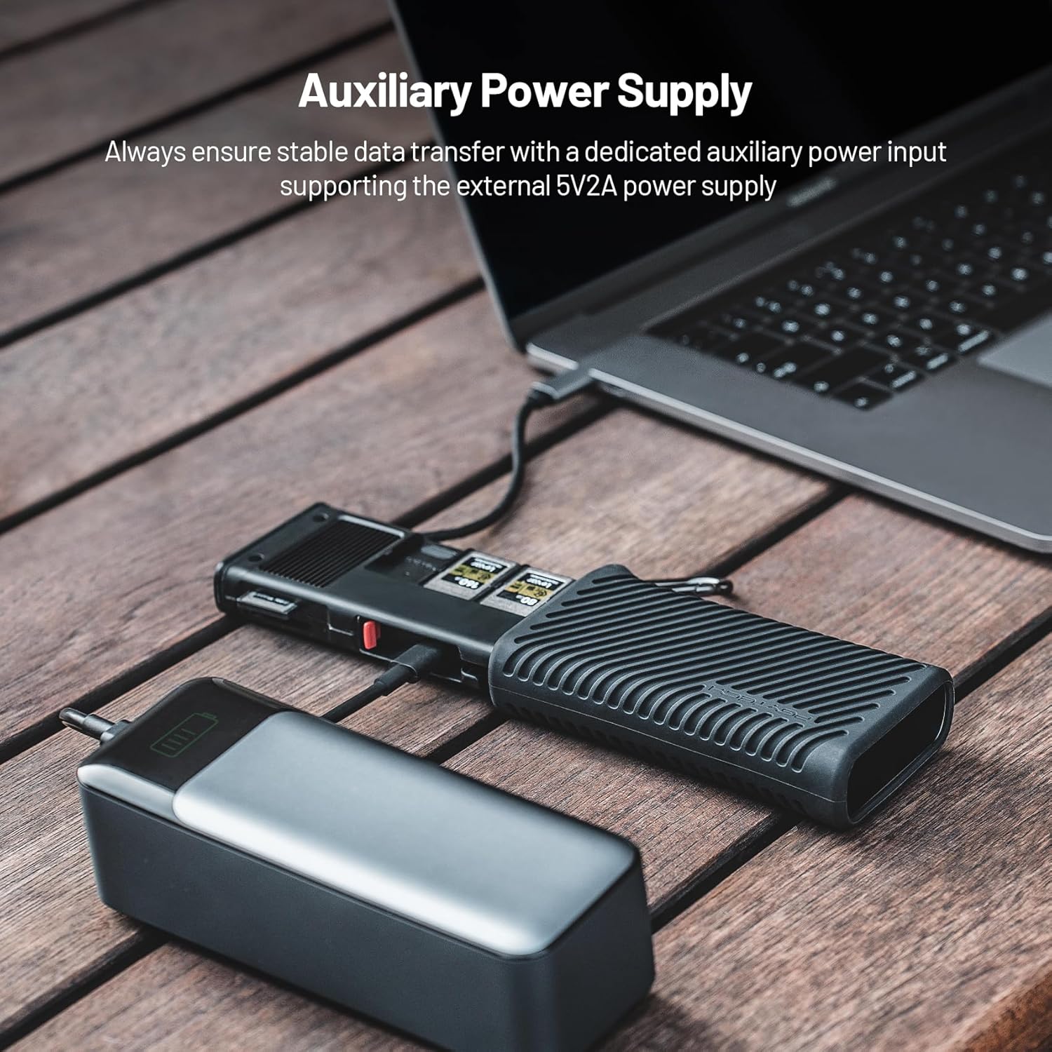 Note: CFexpress and SD/Micro SD cards cannot be read simultaneously. The product prioritizes CFexpress when both cards are inserted. After CFexpress data transfer, the SD card becomes accessible