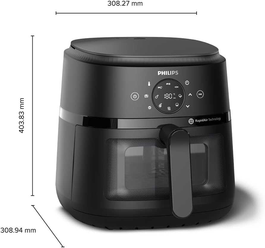Philips Air Fryer 2000 Series 13-in-1 functions, 6.6 Quarts, Compact Design with Cooking Window, Black, (NA230/00)