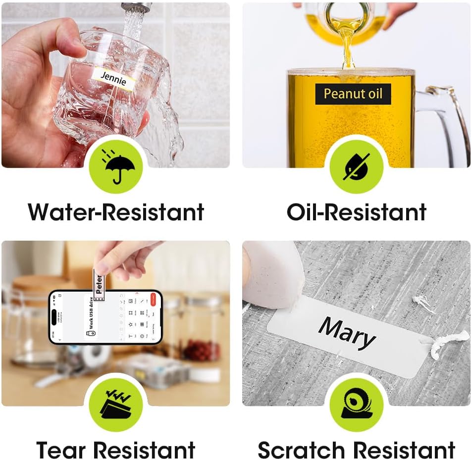 - Versatile applications: Excel at labeling kitchens, shelves, cabinets, dishwashers, microwaves, and refrigerators. Outdoors, provide UV, and extreme temperature resistance, perfect for labeling equipment like scaffolding, lawnmowers, snow blowers, and marking plant names. The labels are crafted for long-lasting durability, ensuring text remains clear and legible for years, making them ideal for identifying cords, file folders, USB sticks, food containers, shelving, personal possessions, and more