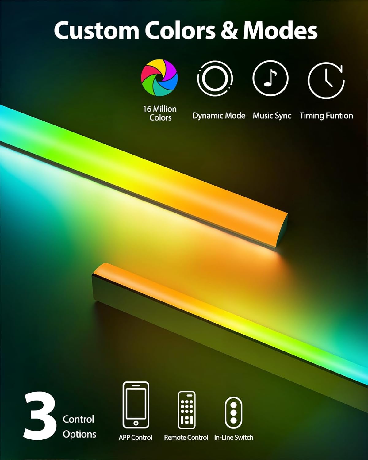 •  Integrated Rhythm Light: This Wall Mount TV Bracket features DIY music rhythm light with three ways to operate including a mobile app, remote control, and in-line switch. Customize using 16 million colors, brightness, speed, modes, and a timer function. Music sync changes LED light color to match the rhythm of your music.