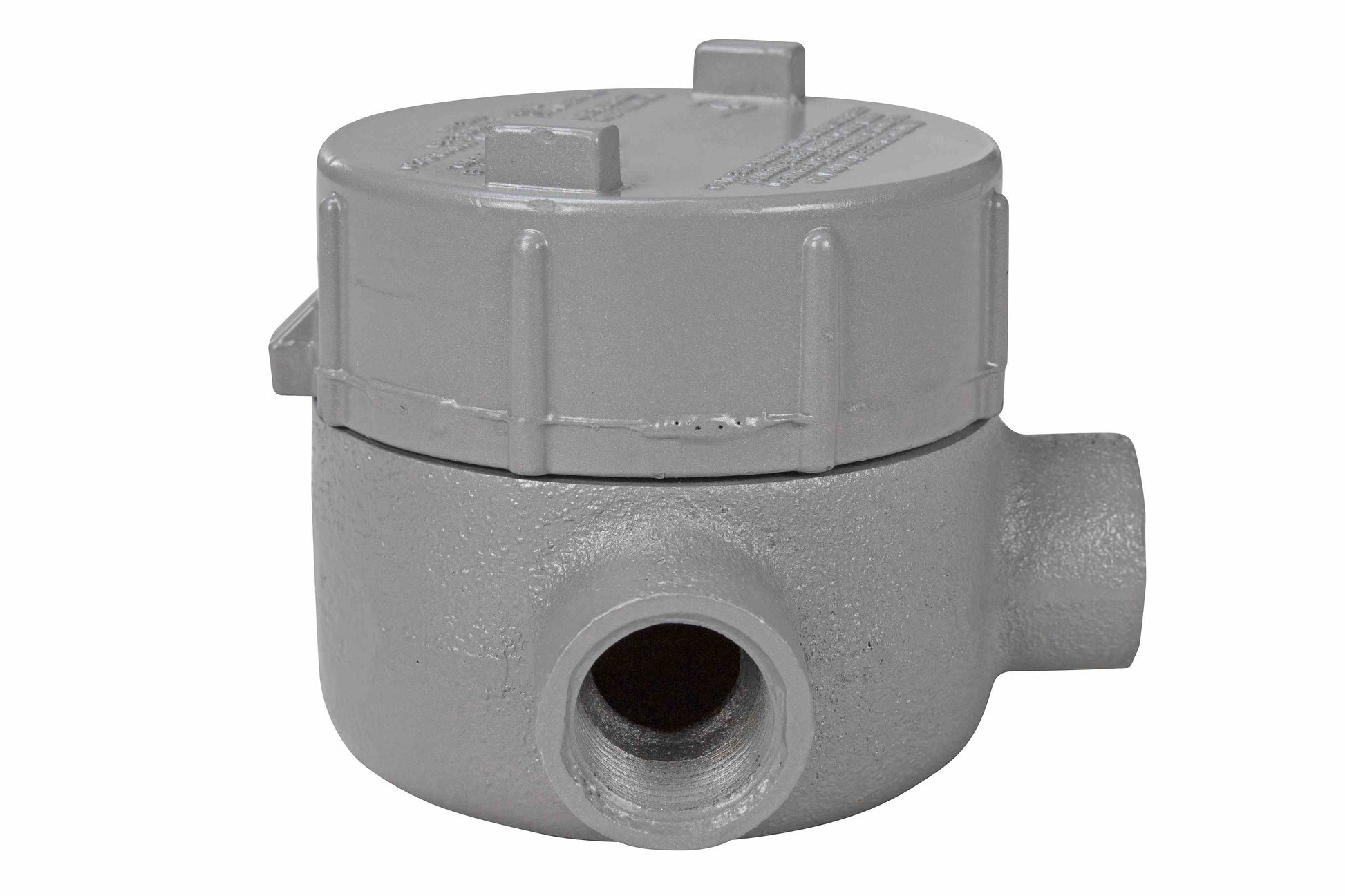 The EPJ-2-L-.75IN is constructed of duraloy iron alloy with a tri-coat finish. Protected by a Type 4X enclosure, this explosion proof accessory caters to surface or conduit mounting and contains two, 3/4" NPT hubs.